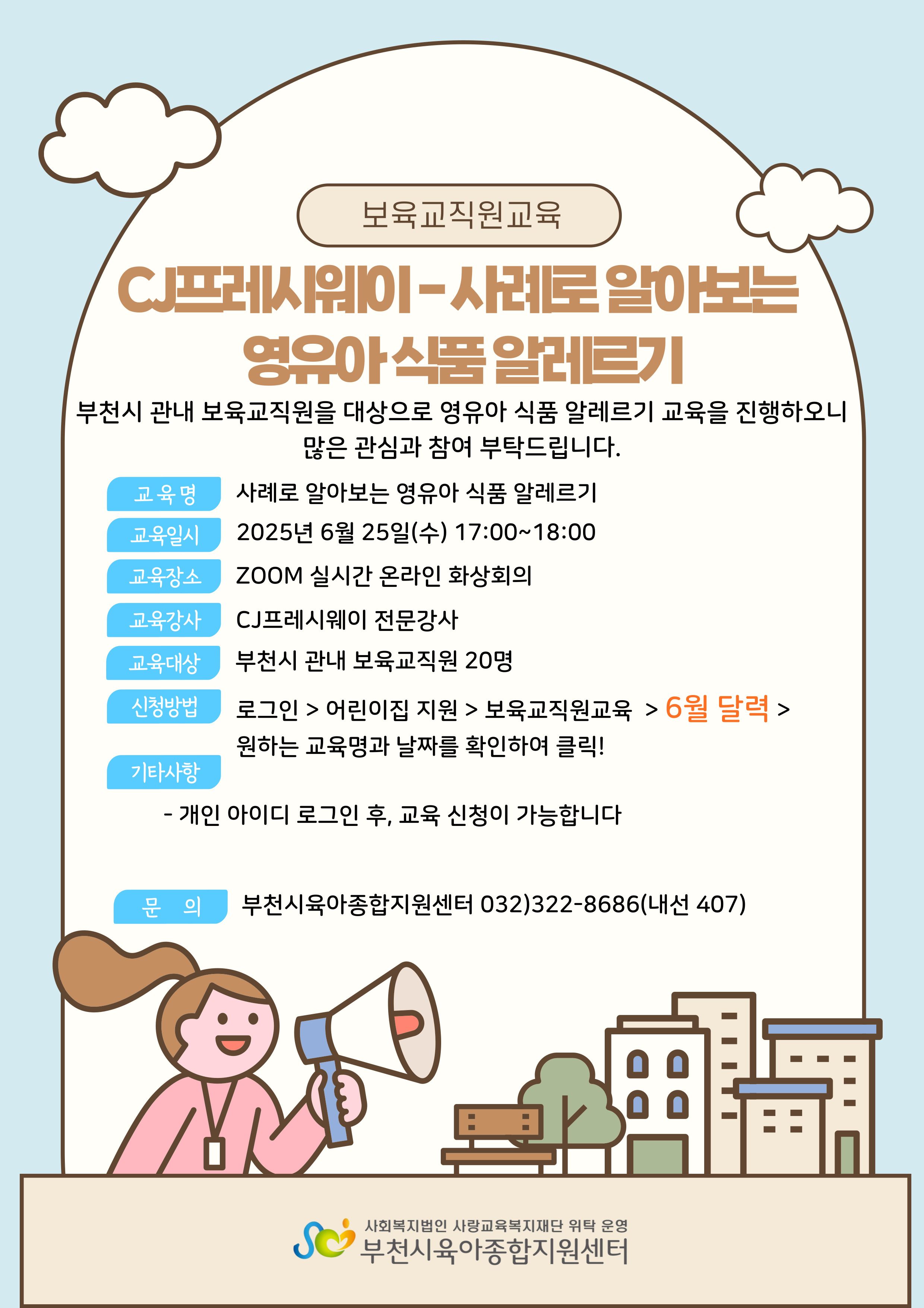 사례로 알아보는 영유아 식품 알레르기(CJ프레시웨이) 2025.06.25(수) 17:00 ~ 18:00