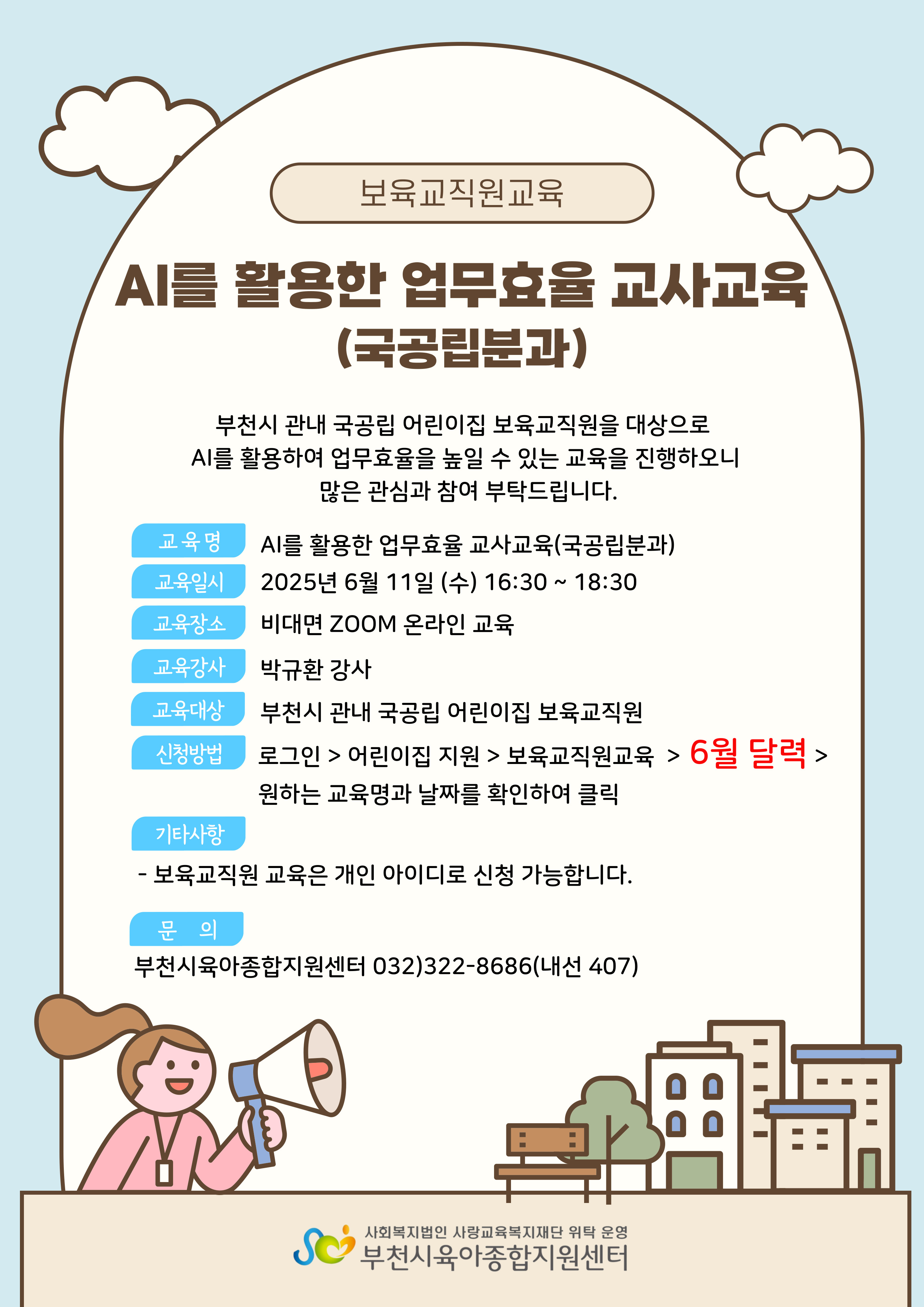 AI를 활용한 업무효율 교사교육(국공립분과 지정교육) 2025.06.11(수) 16:30 ~ 18:30