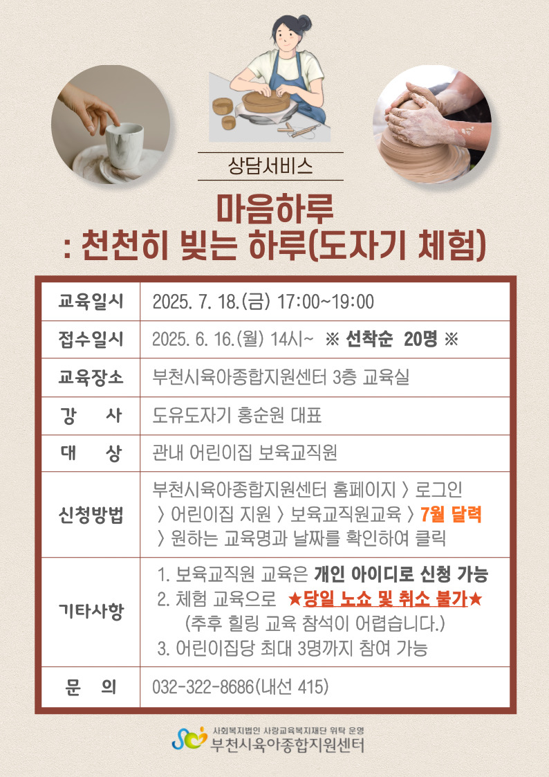 [상담서비스] 천천히 빚는 하루(도자기 체험)