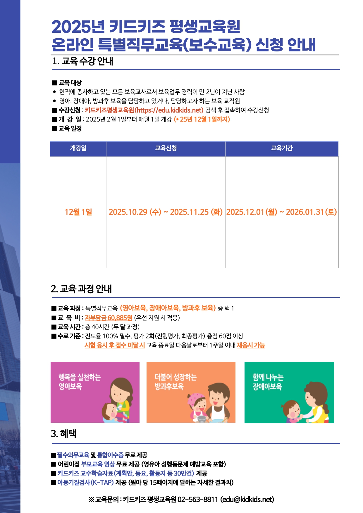 [외부] [키드키즈평생교육원] 보육교직원 온라인 특별직무교육 2025년 12월 개강반 안내