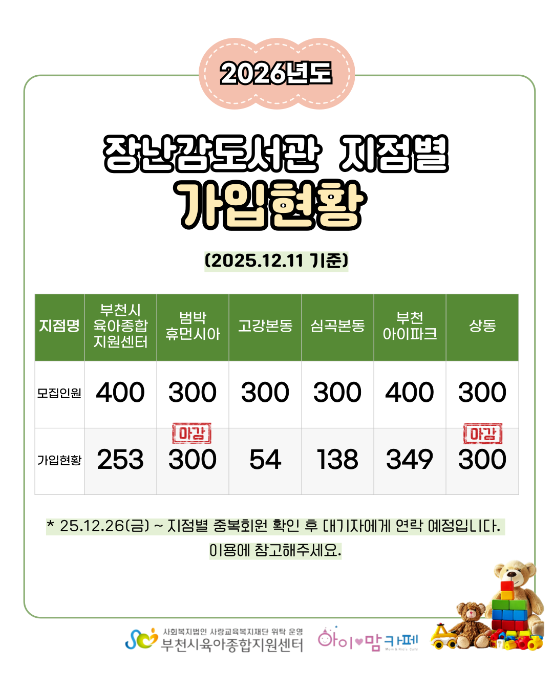 [센터] 2026년 장난감도서관 지점별 가입현황(12.11기준)
