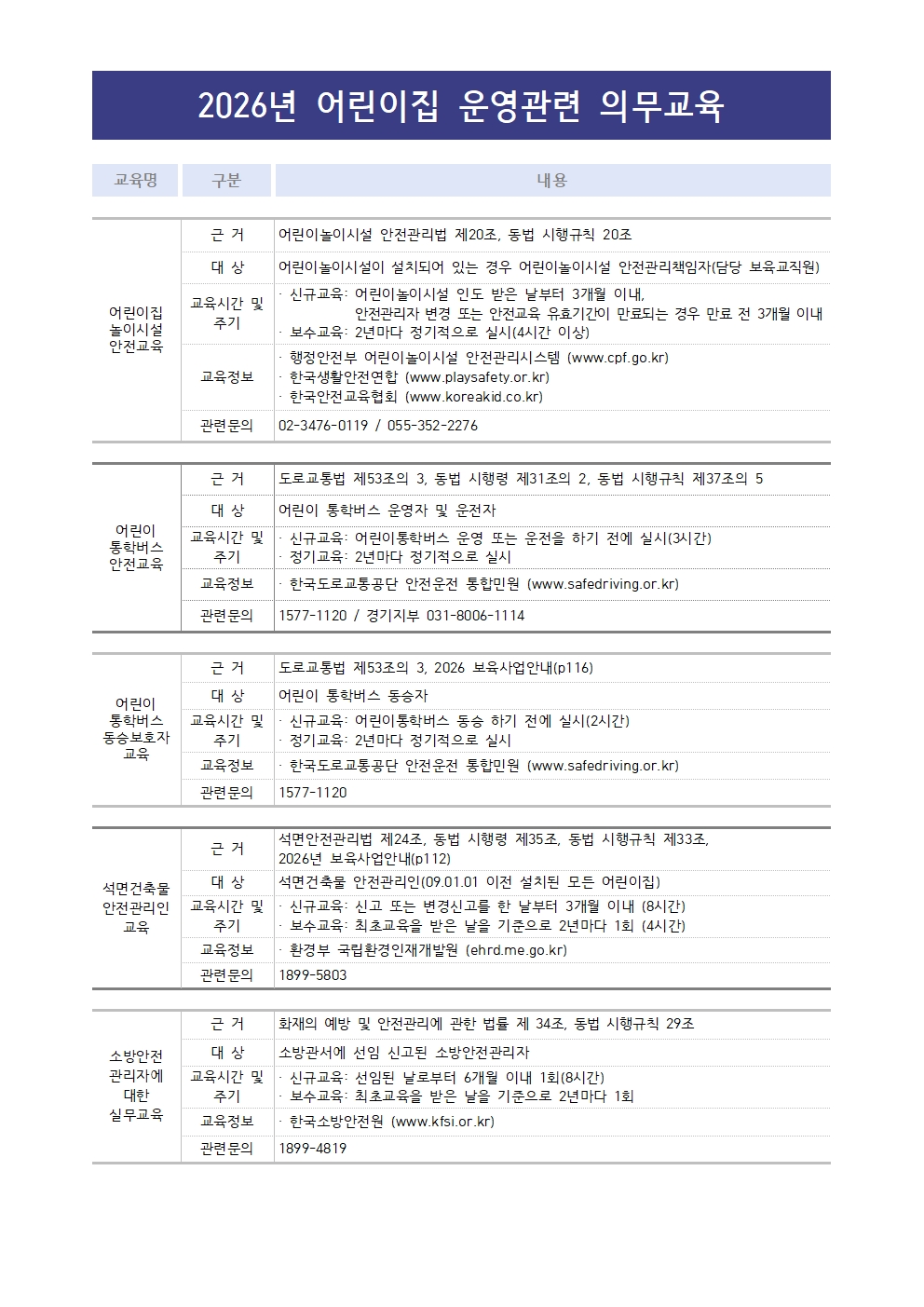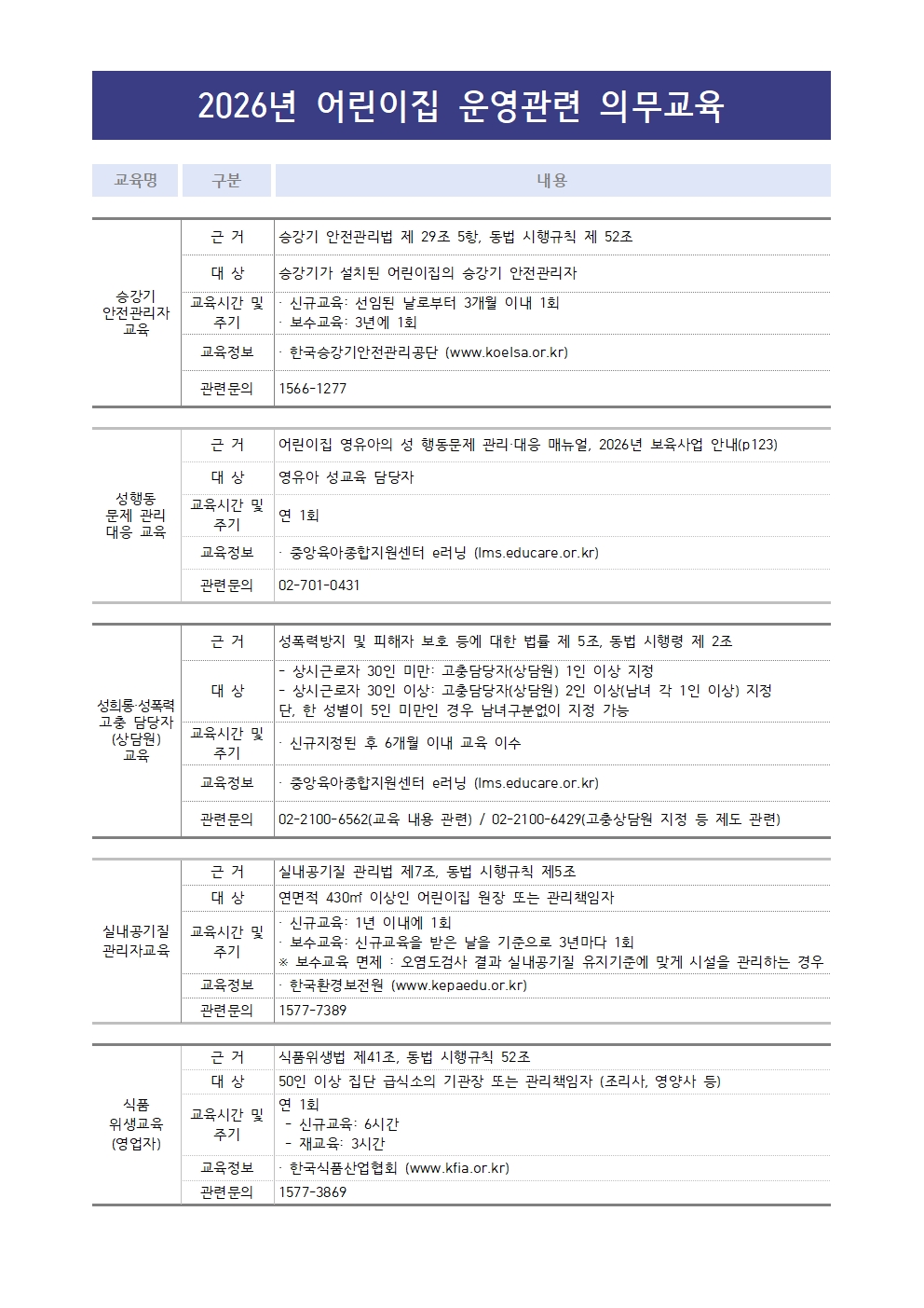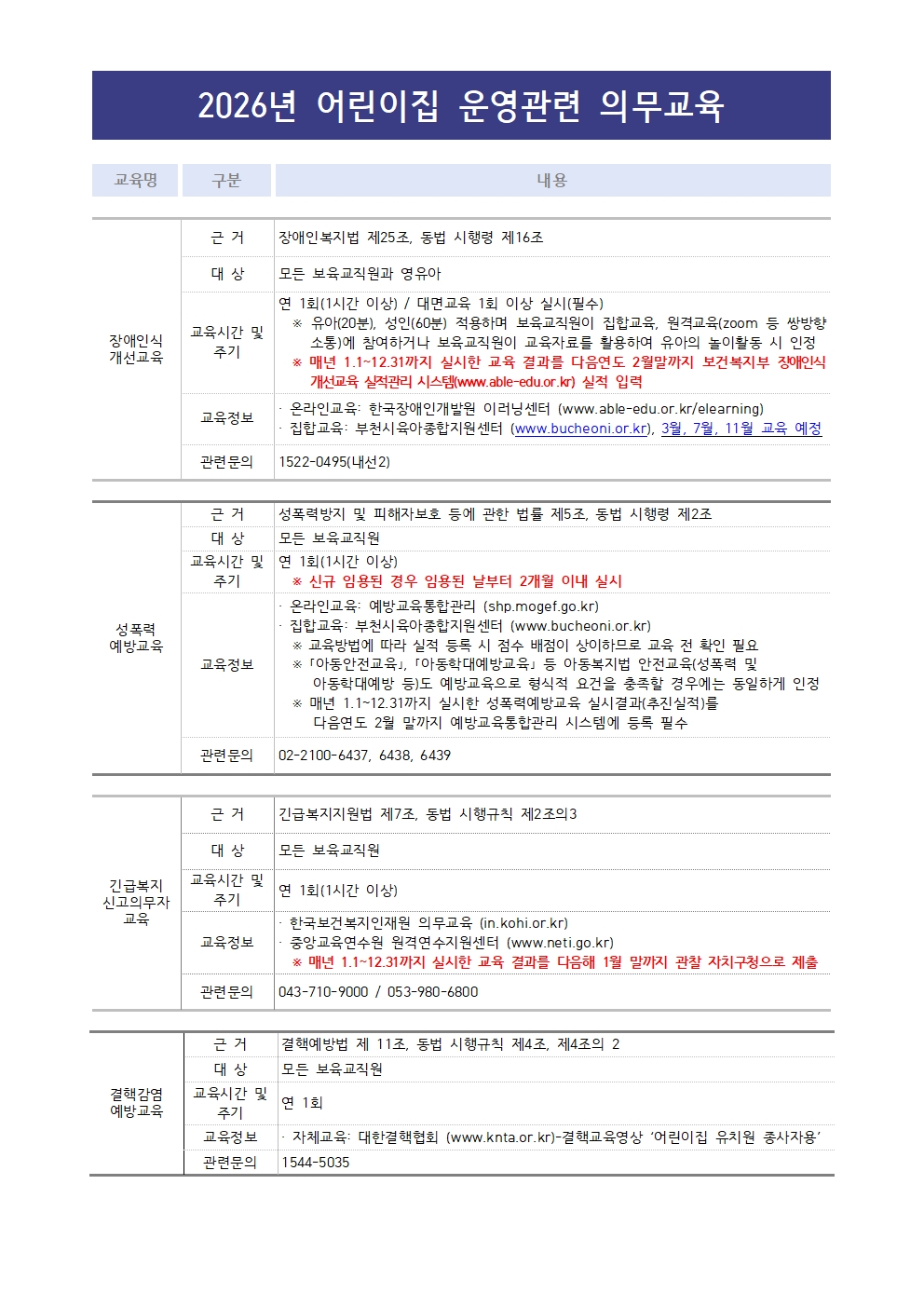 [센터] 2026년 어린이집 운영관련 의무교육 현황