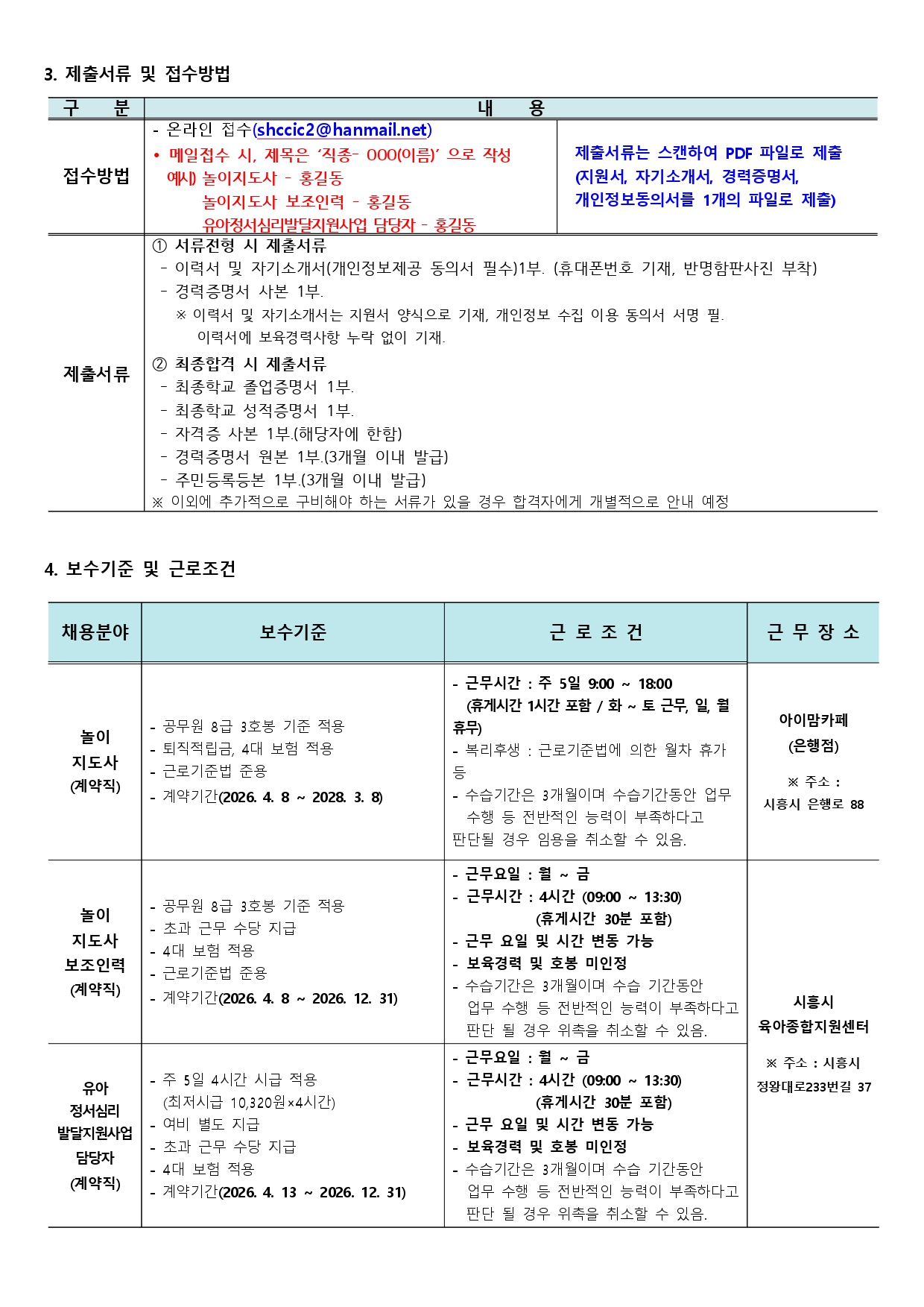 [외부] [시흥시육아종합지원센터] 직원(놀이지도사, 놀이지도사보조인력, 유아 정서심리 발달지원사업 담당자) 채용 안내