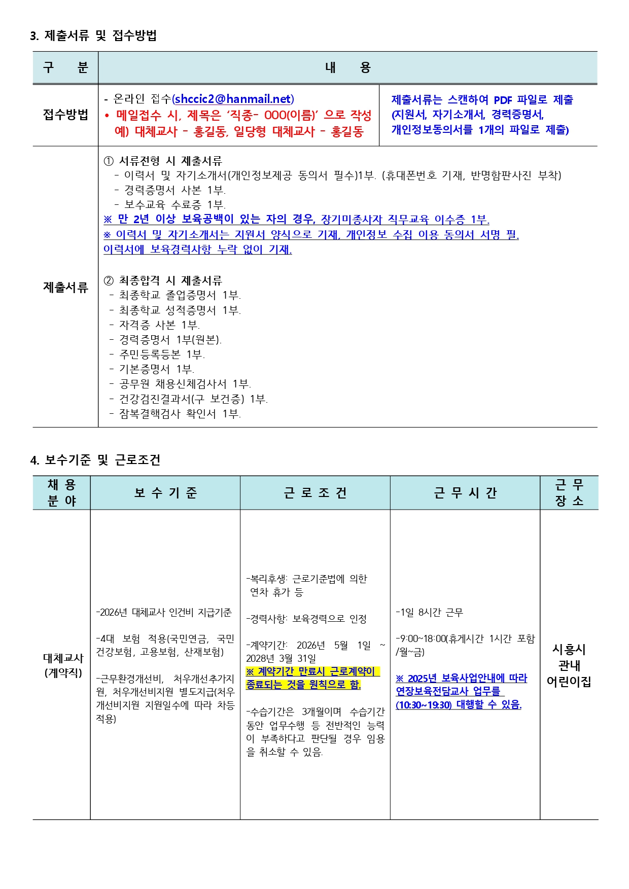 [외부] [시흥시육아종합지원센터] 직원(대체교사) 채용 안내