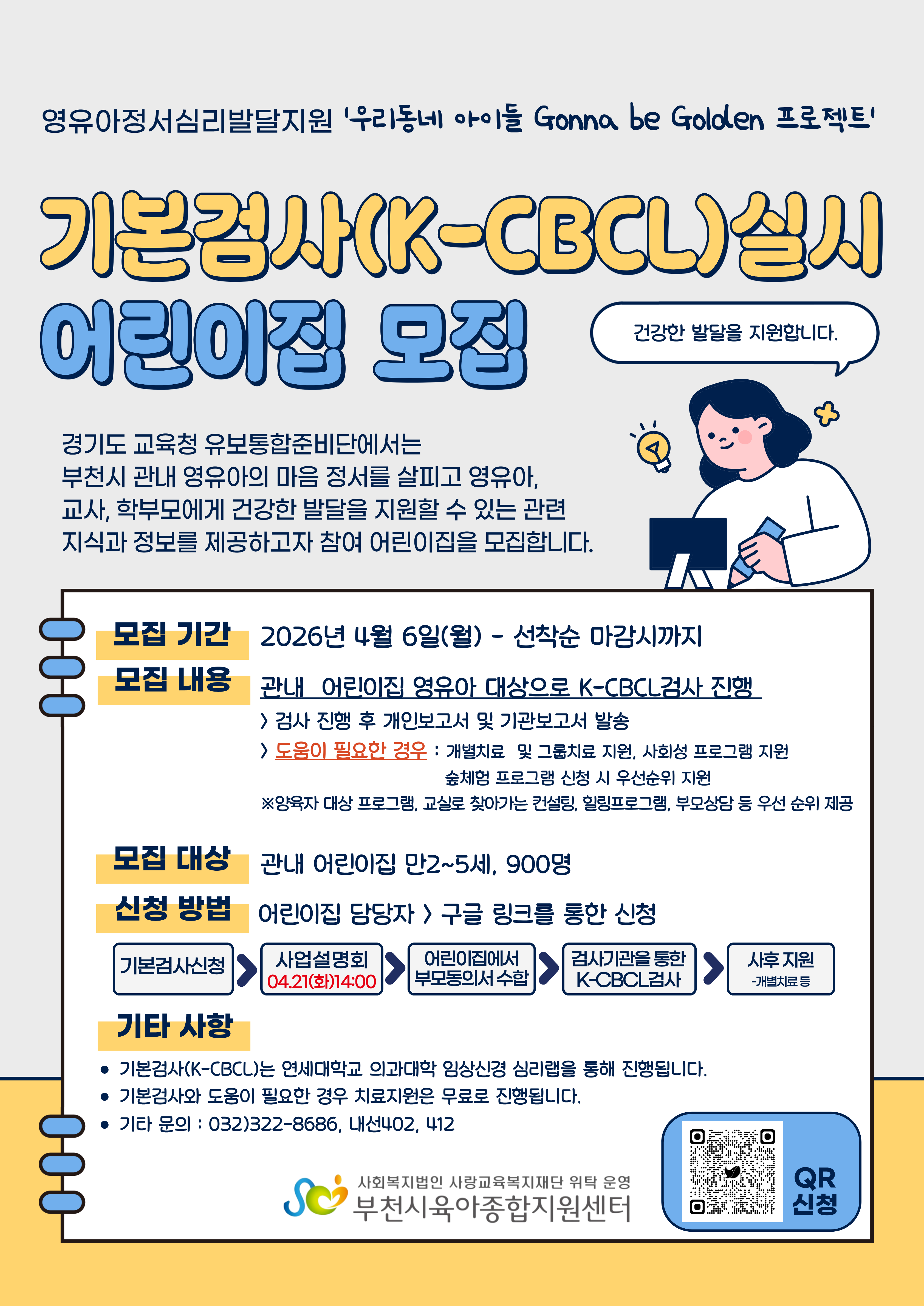 [센터] [영유아정서심리발달지원] 기본검사 진행 어린이집 모집
