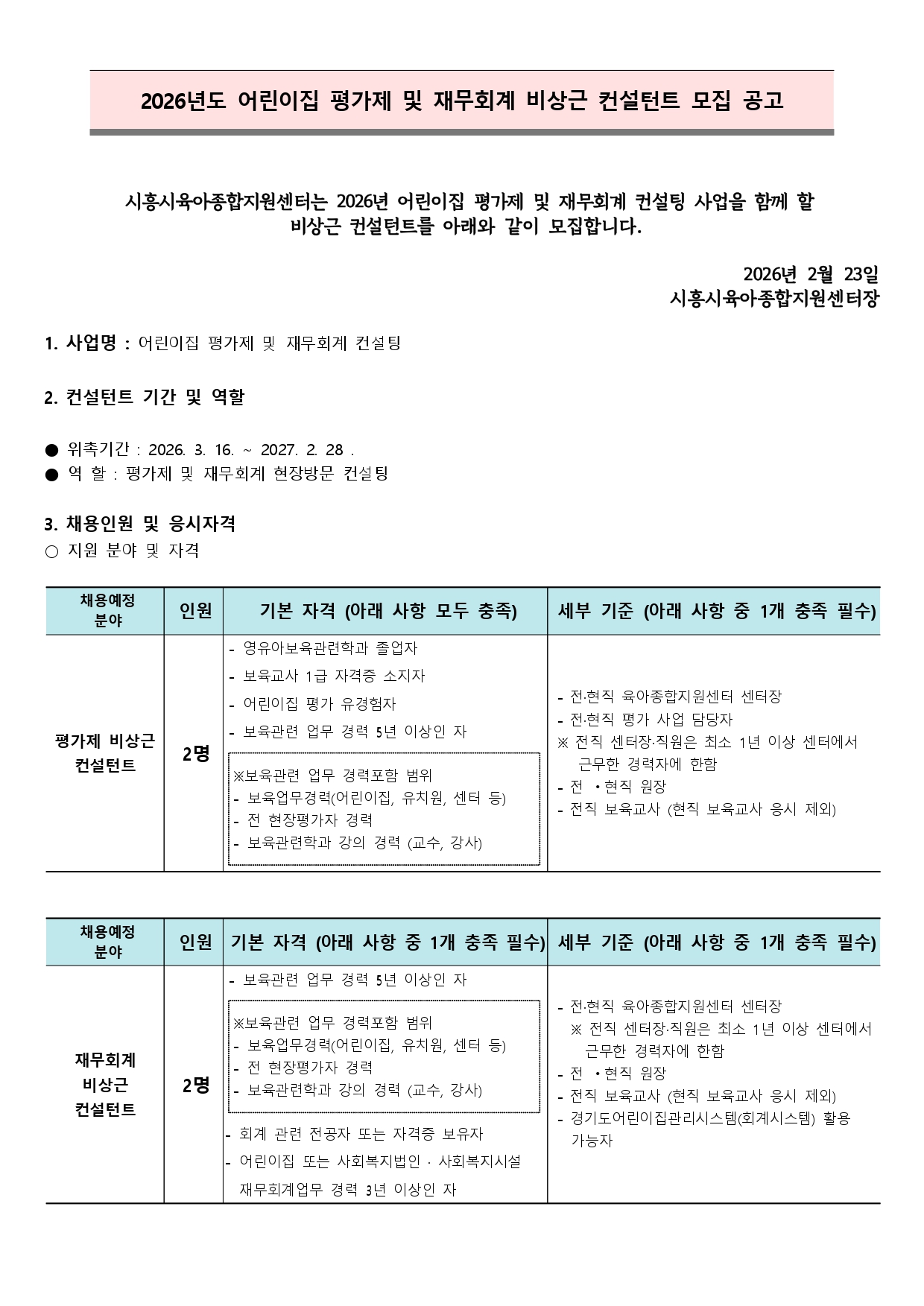 [외부] [시흥시육아종합지원센터] 비상근컨설턴트 채용 재공고