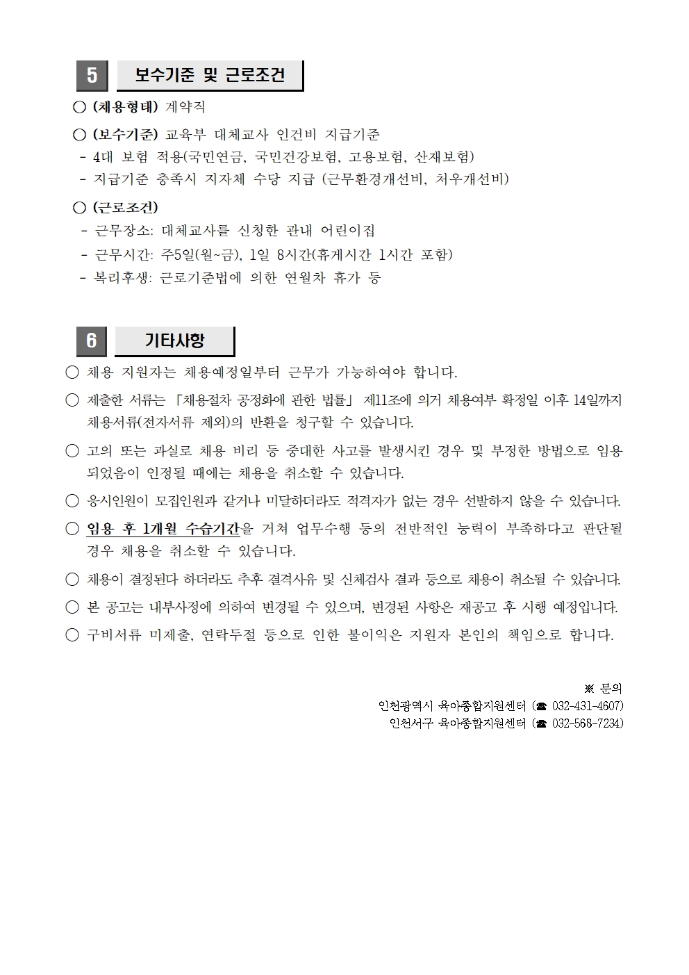 [외부] [인천광역시육아종합지원센터, 인천서구육아종합지원센터] 대체교사 채용 안내