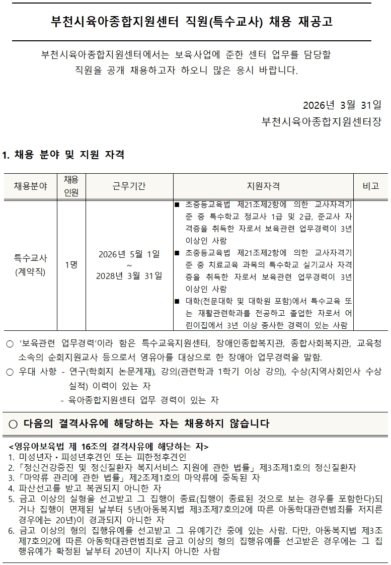 [센터] 26-08 특수교사 채용 재공고