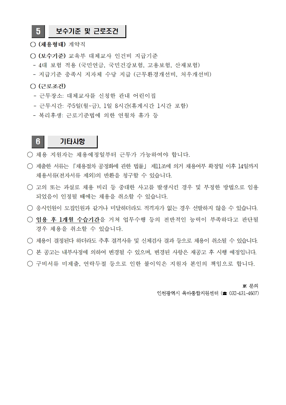 [외부] [인천광역시육아종합지원센터] 대체교사 채용 안내