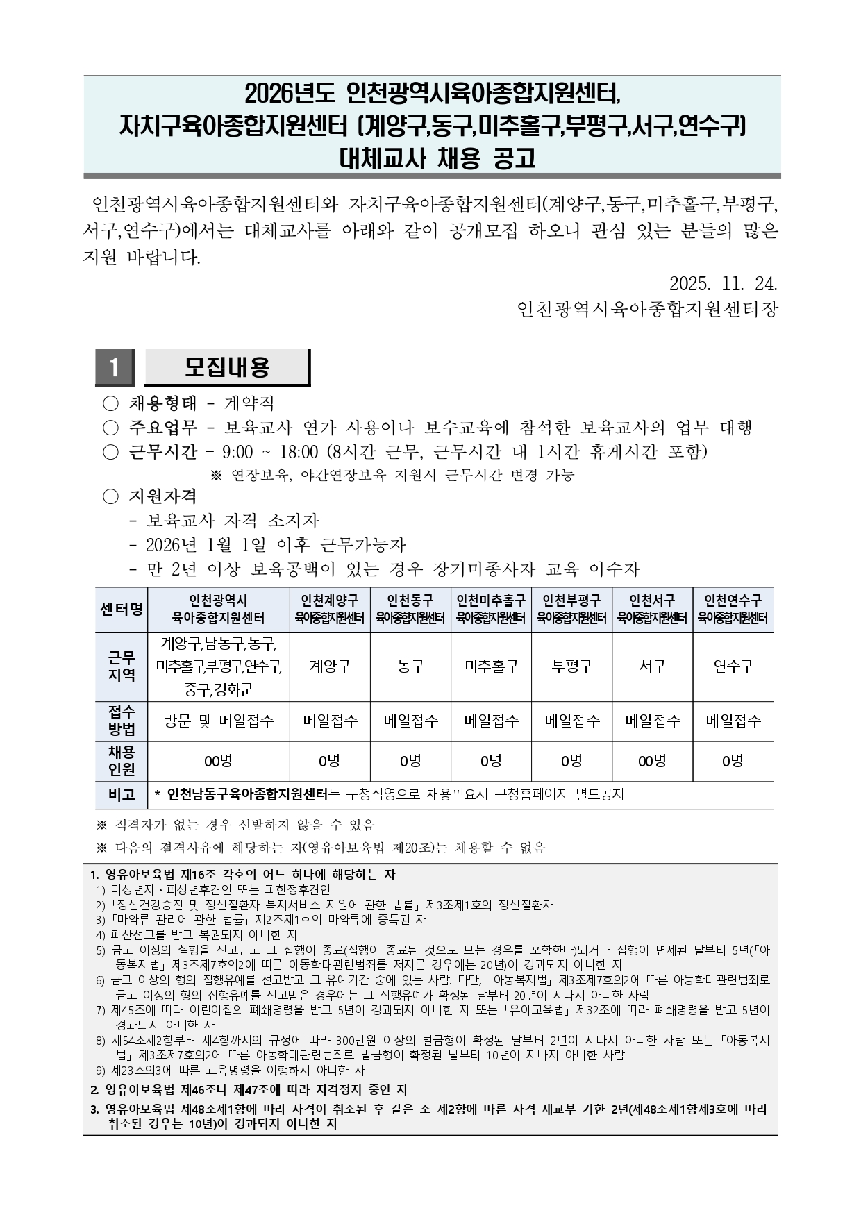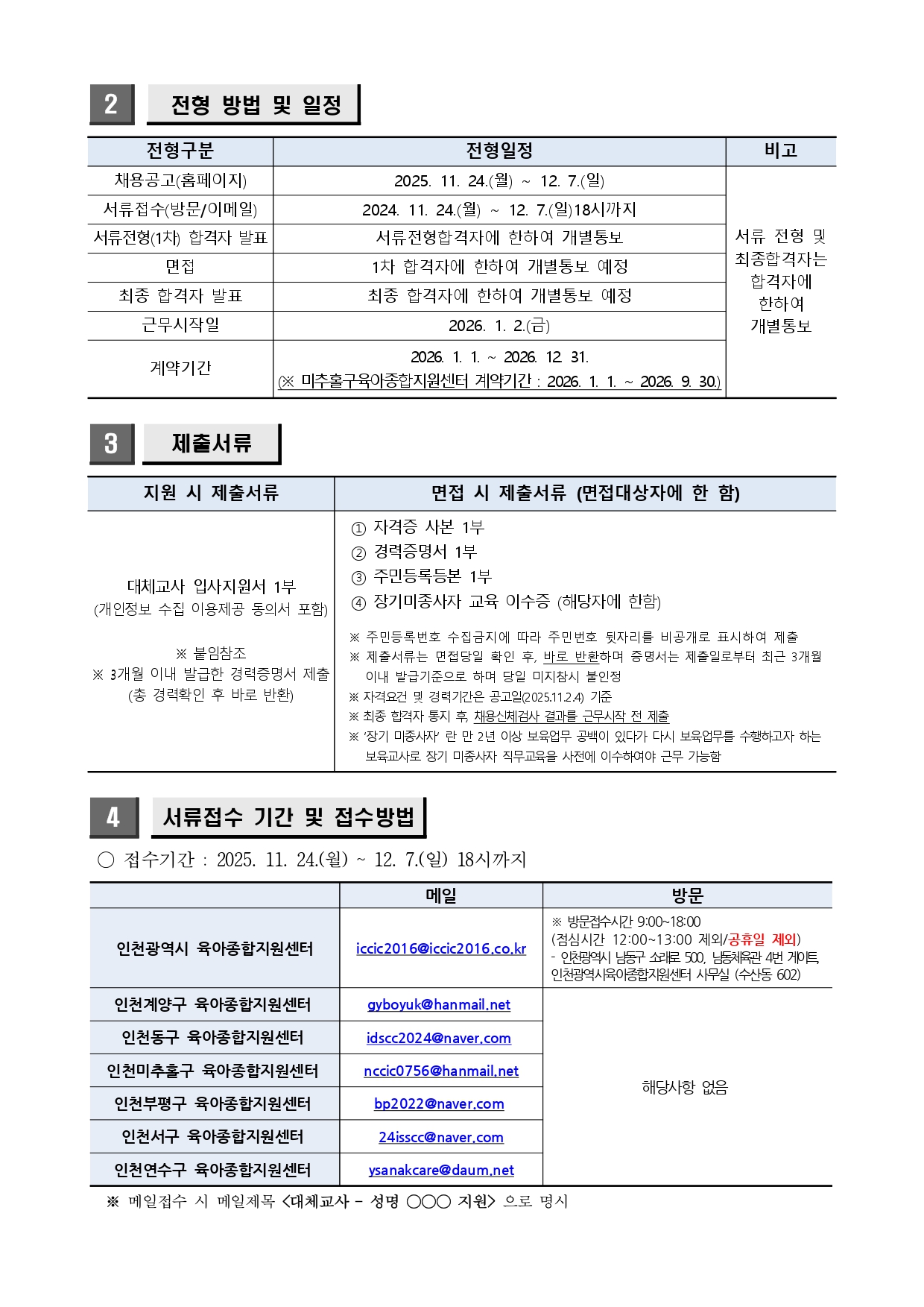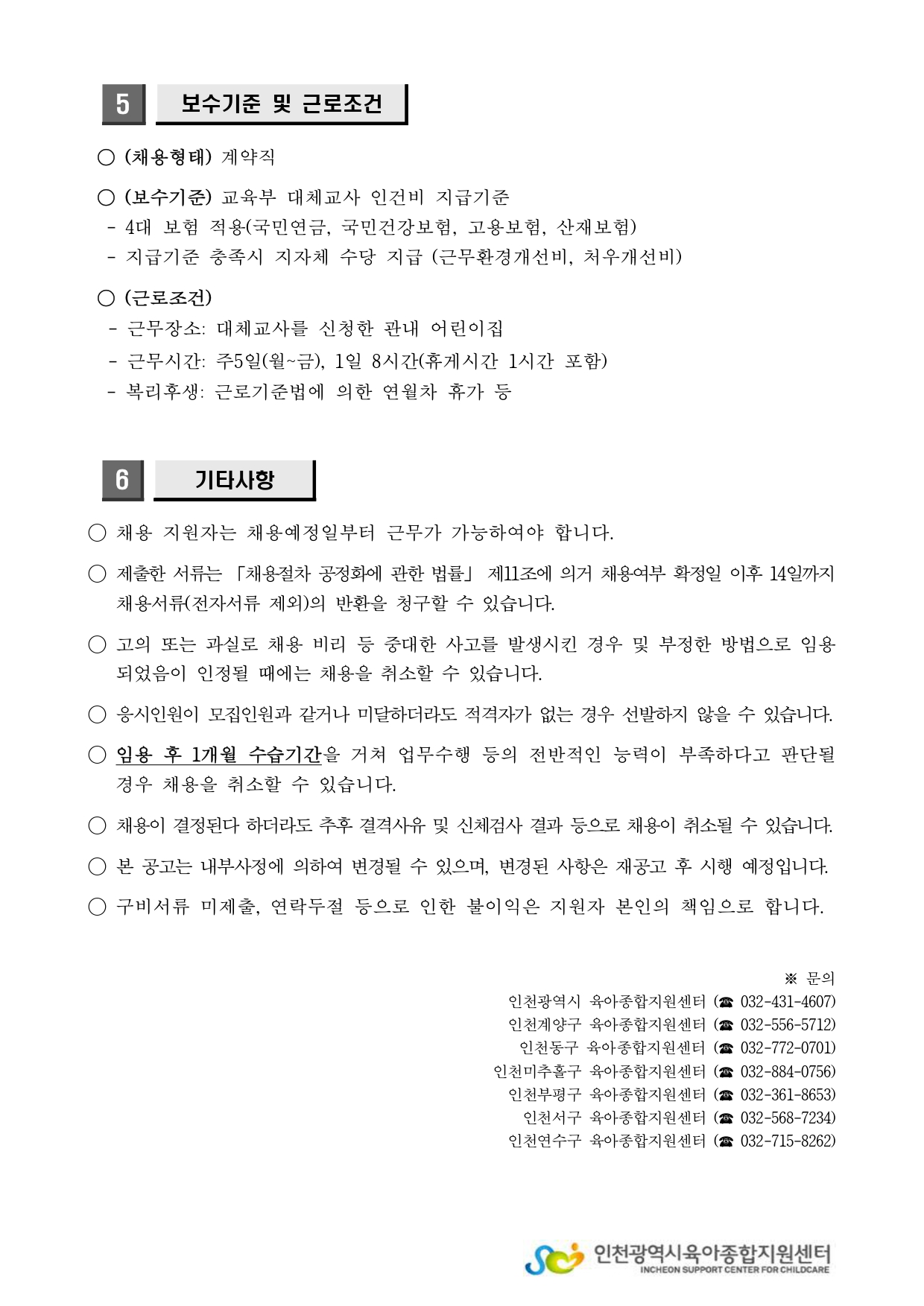 [외부] [인천광역시육아종합지원센터] 대체교사 채용 안내