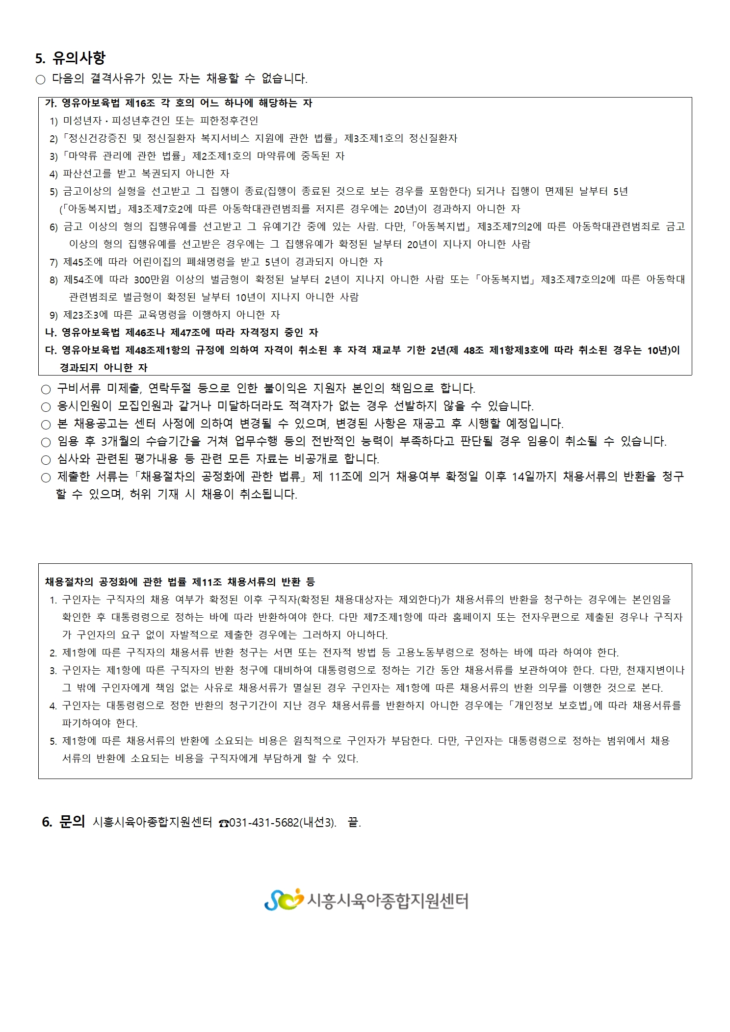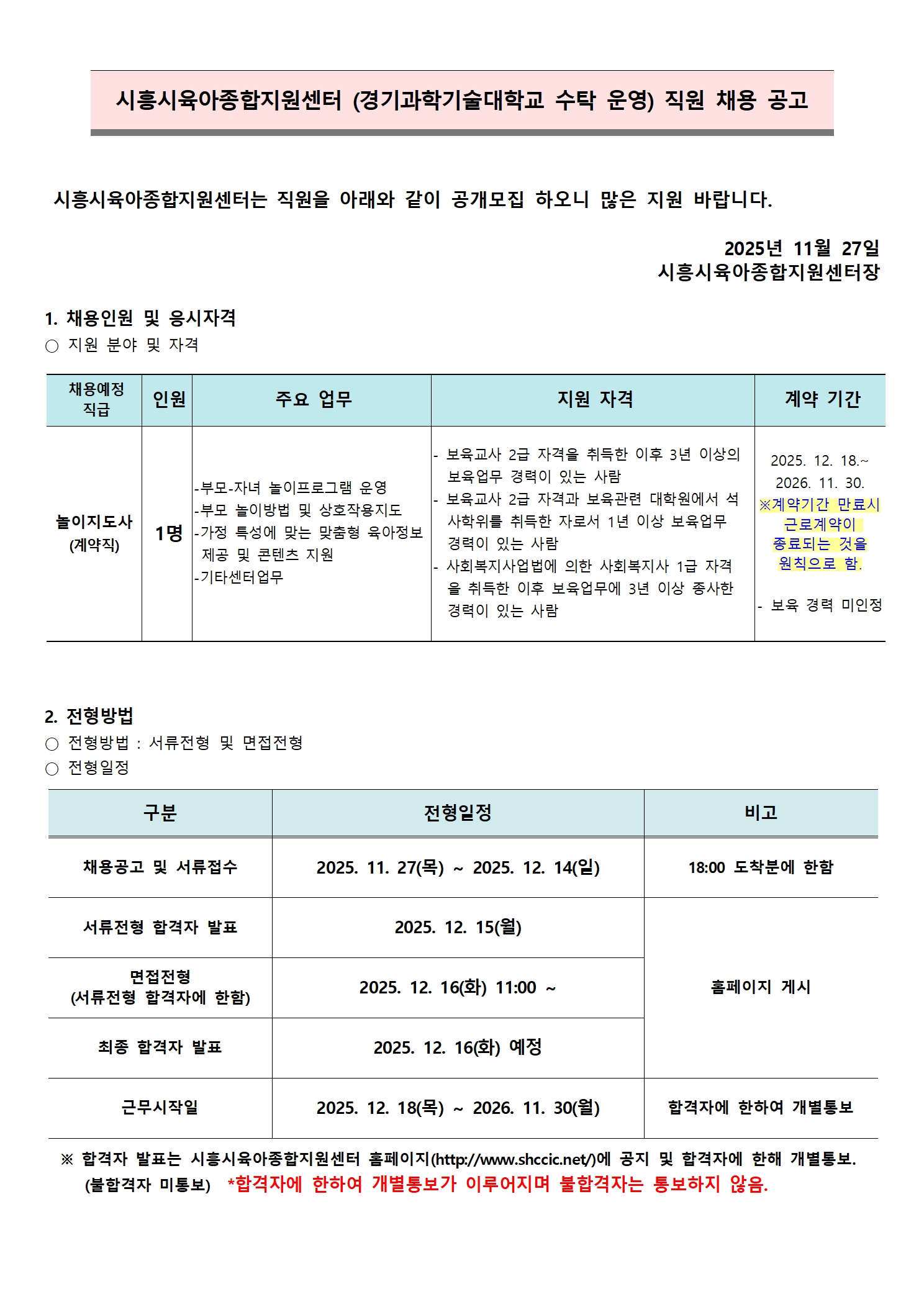 [외부] [시흥시육아종합지원센터] 직원(놀이지도사) 채용 안내