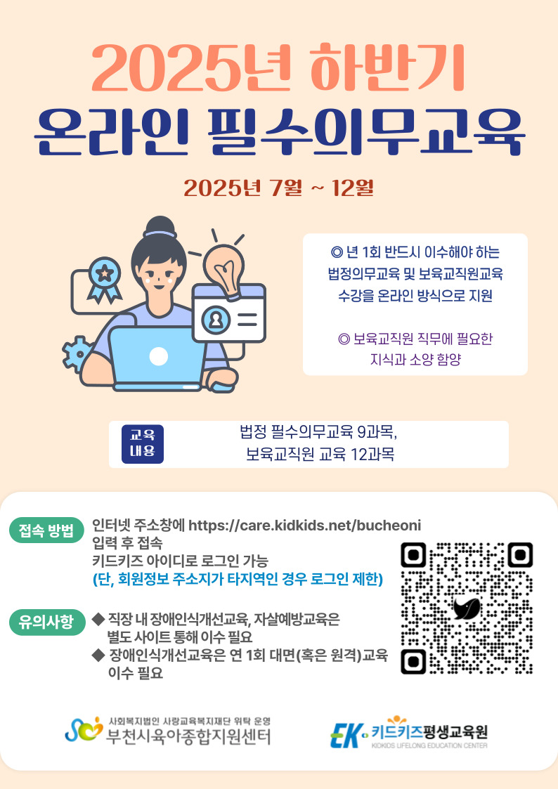 [센터] [키드키즈 평생교육원] 2025년 하반기 온라인 필수의무교육 및 보육교직원 교육 안내