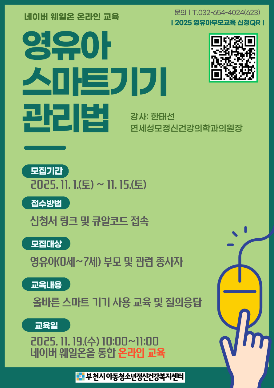 [외부] [부천시아동청소년정신건강복지센터] 영유아 스마트기기 관리 교육 안내 (영유아 부모 및 관련 종사자 대상)