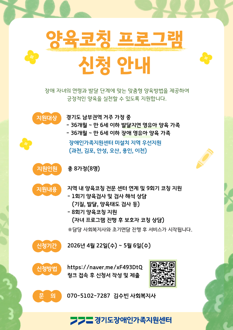 [외부] [경기도장애인가족지원센터] 양육코칭 프로그램 안내