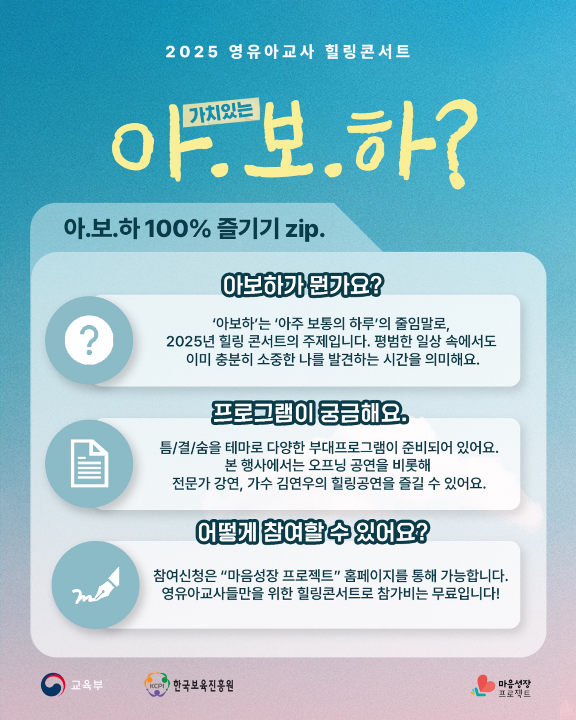 [외부] [한국보육진흥원] 영유아교사 힐링콘서트 가치있는 아.보.하 안내