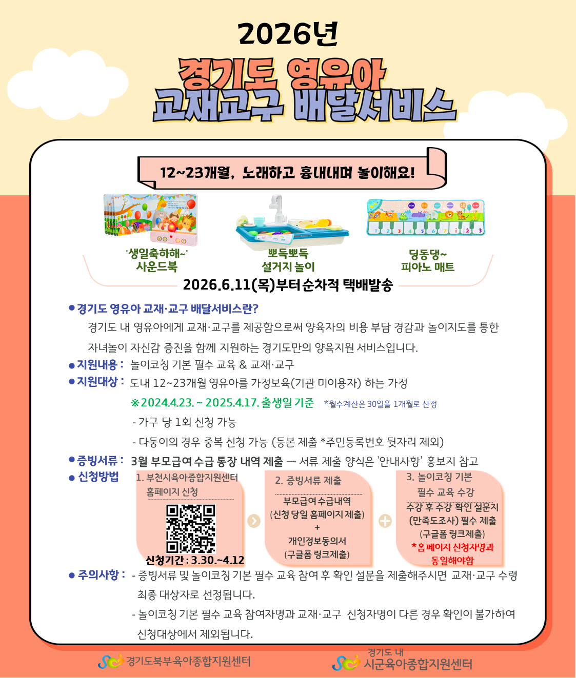 * 부천시육아종합지원센터 홈페이지 접수 : 2026.3.30(월)~2026.4.12(일)