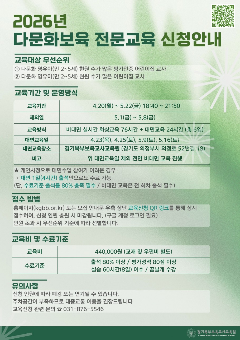 [외부] [경기북부보육교사교육원] 2026년 다문화보육 전문교육 신청 안내