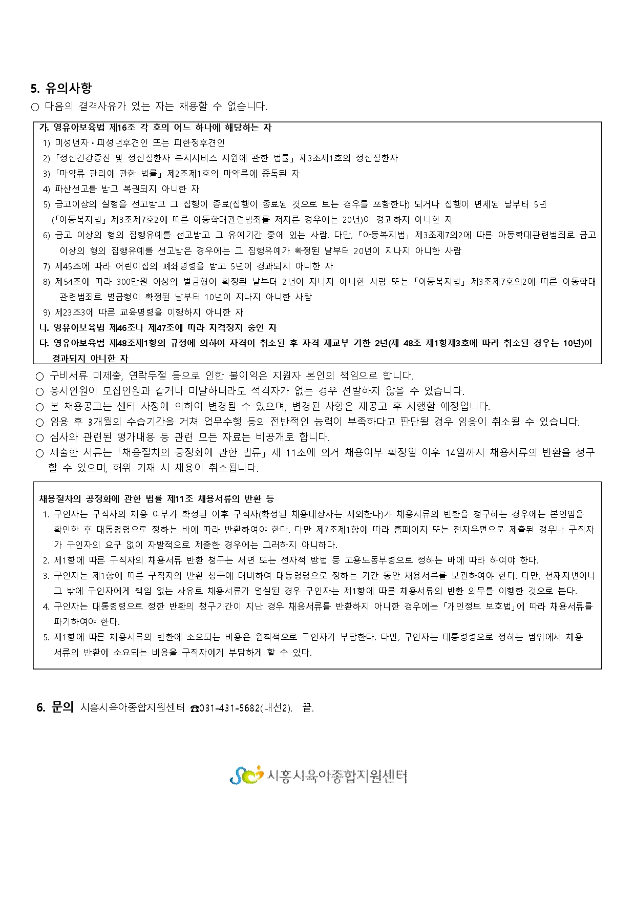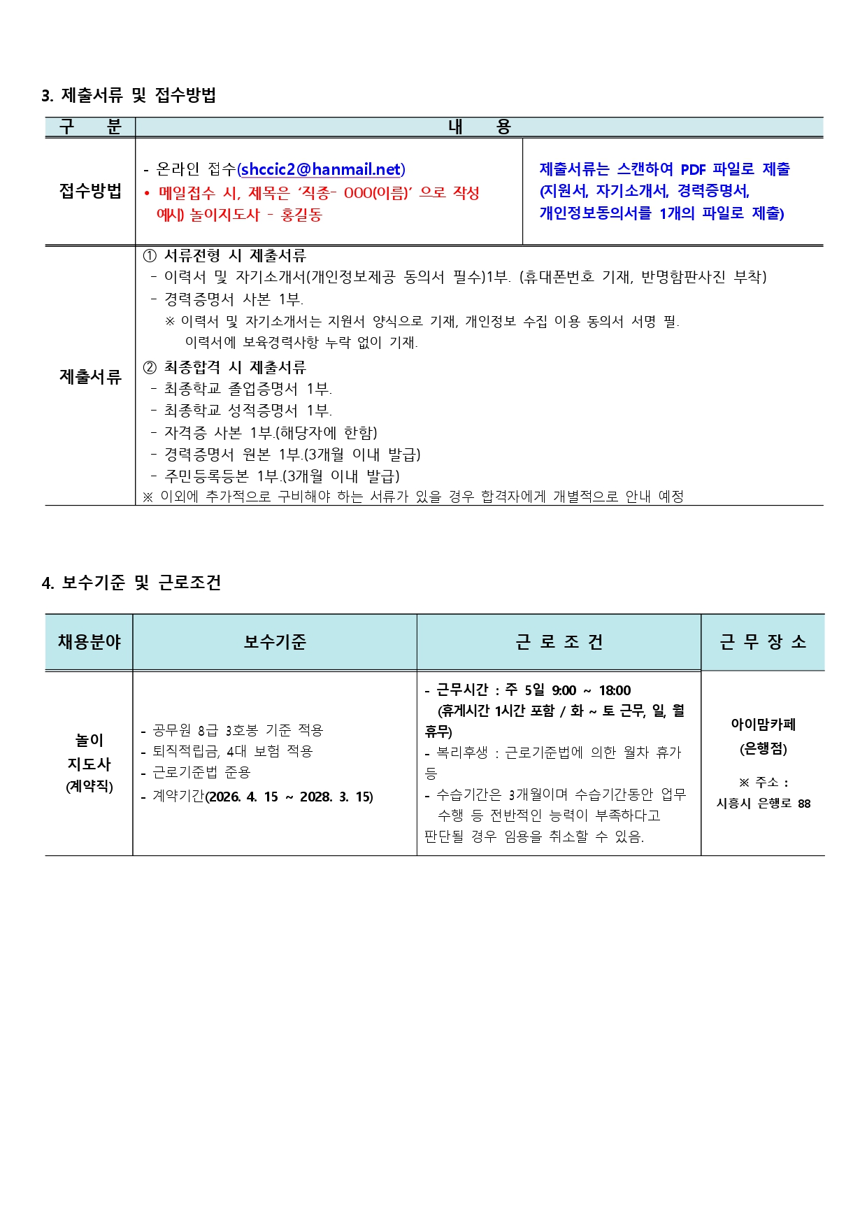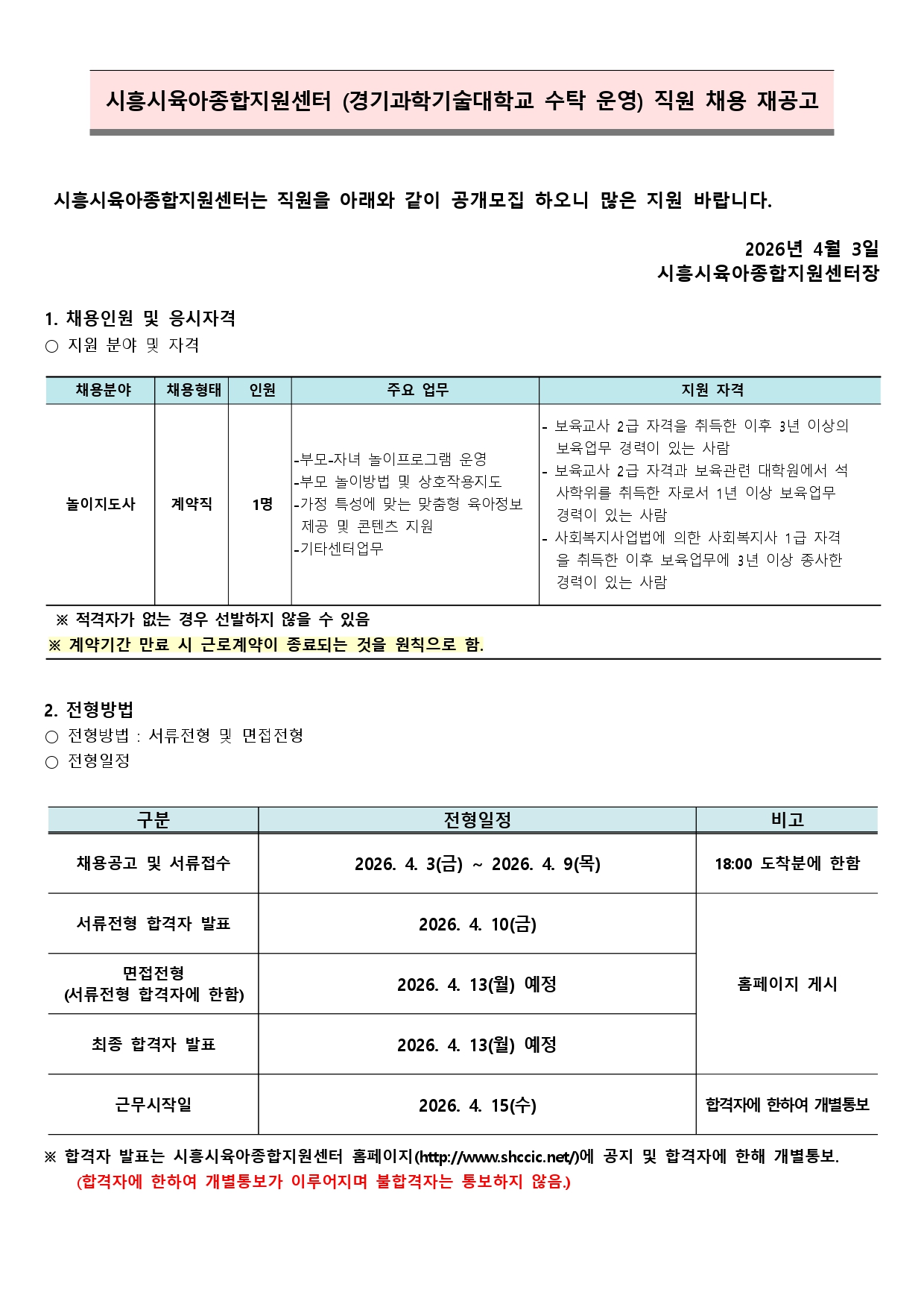 [외부] [시흥시육아종합지원센터] 직원(놀이지도사) 채용 안내