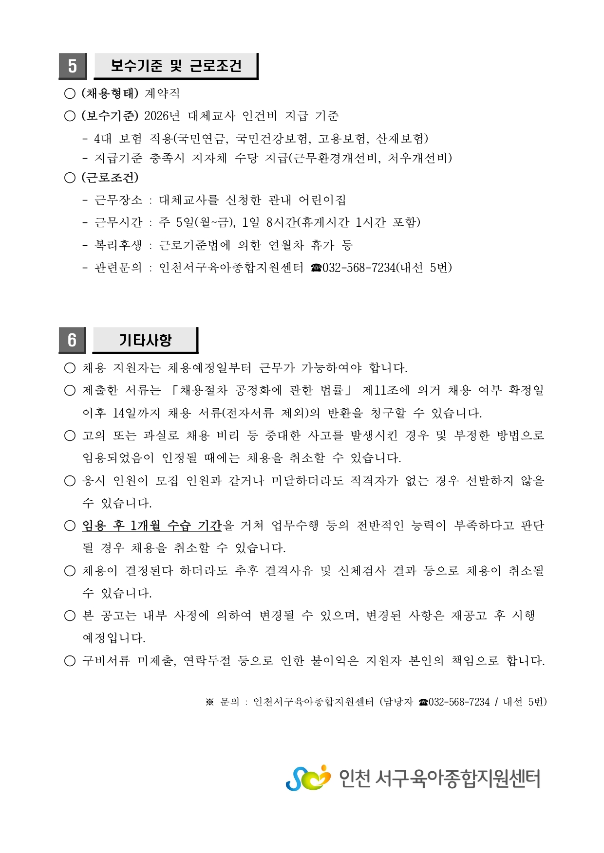 [외부] [인천서구육아종합지원센터] 대체교사 채용 안내