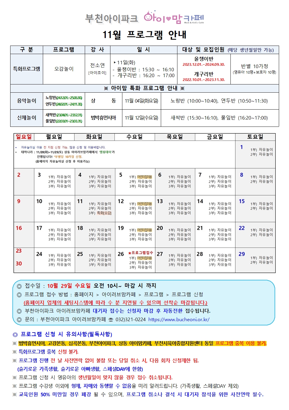 [부천아이파크] 11월 프로그램 안내문 및 일정표