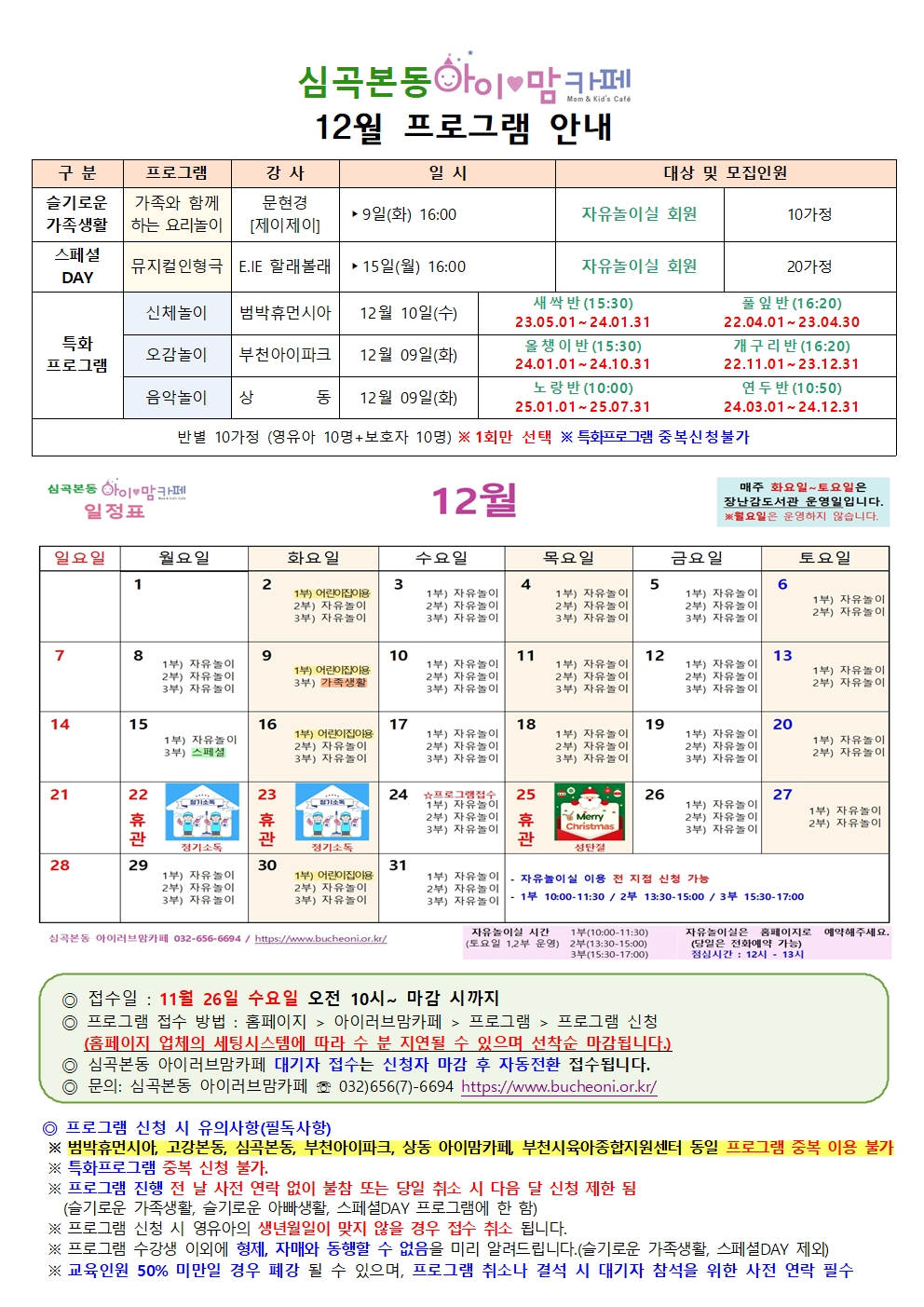 [심곡본동] 12월 프로그램 안내문 및 일정표