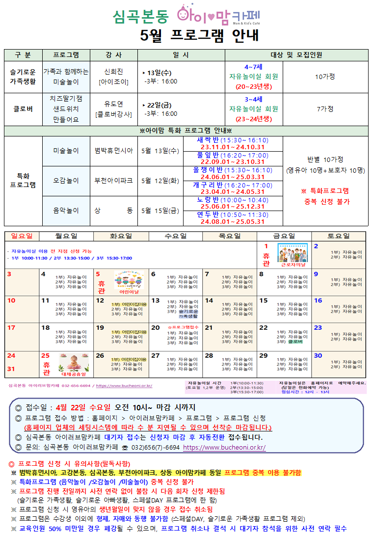 [심곡본동] 5월 프로그램 안내문 및 일정표