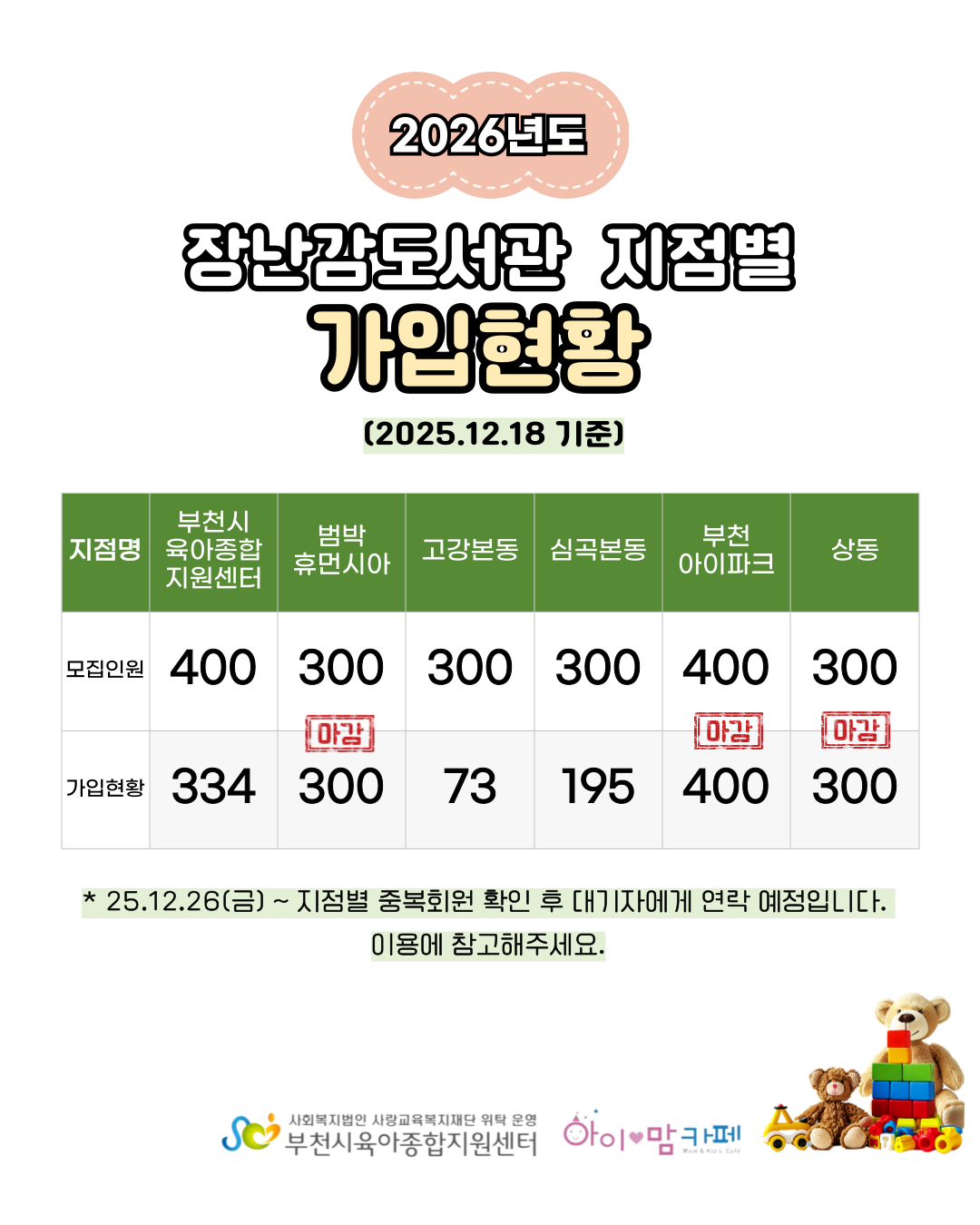 [부천아이파크] 2026년 장난감도서관 지점별 가입현황(12.18기준)