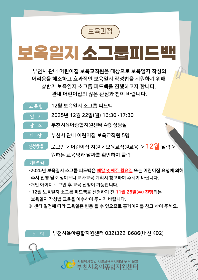 12월 보육일지 소그룹 피드백 2025.12.22(월) 16:30 ~ 17:30