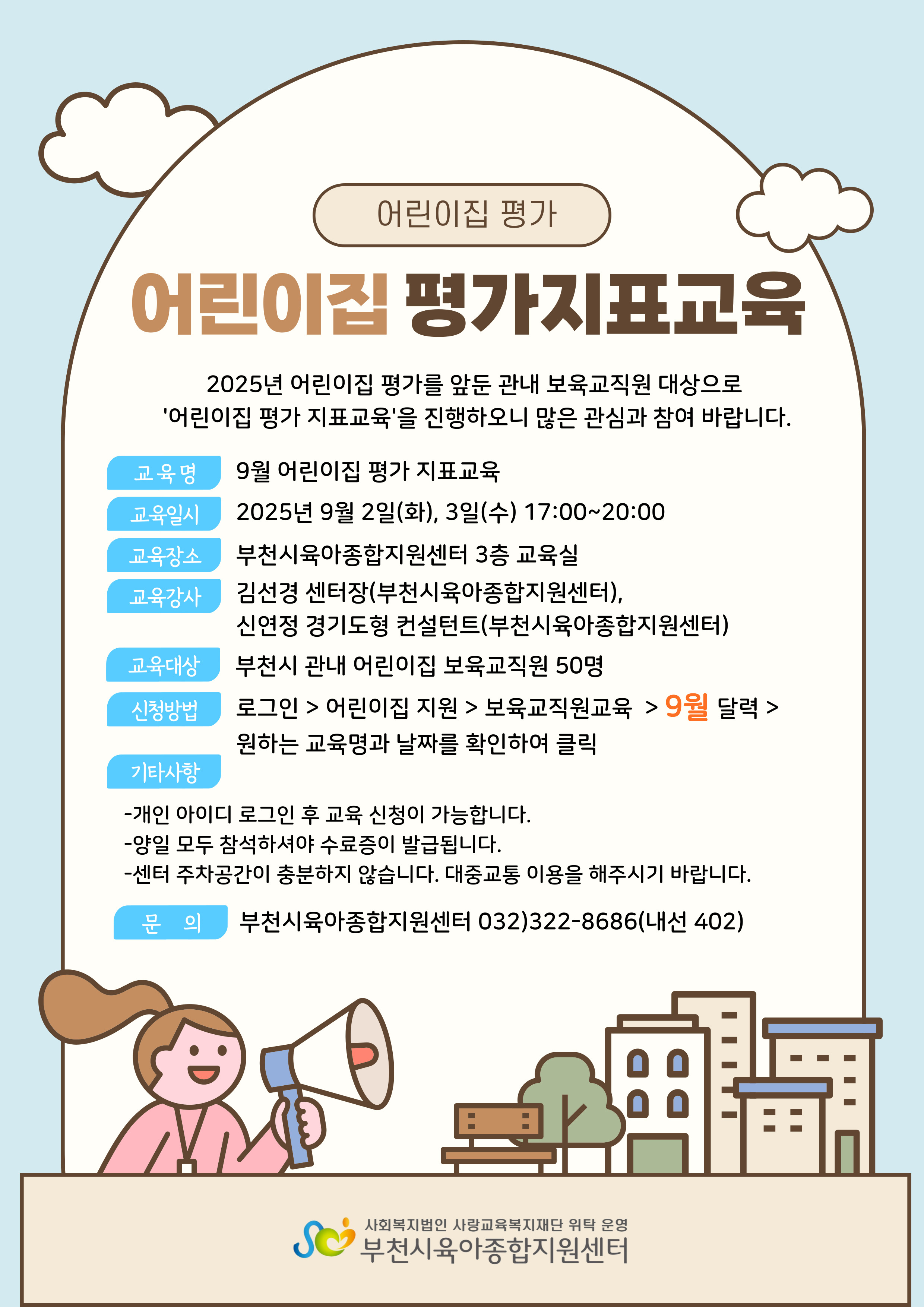 9월 어린이집 평가 지표교육(대면) 2025.09.02(화) 17:00 ~ 20:00