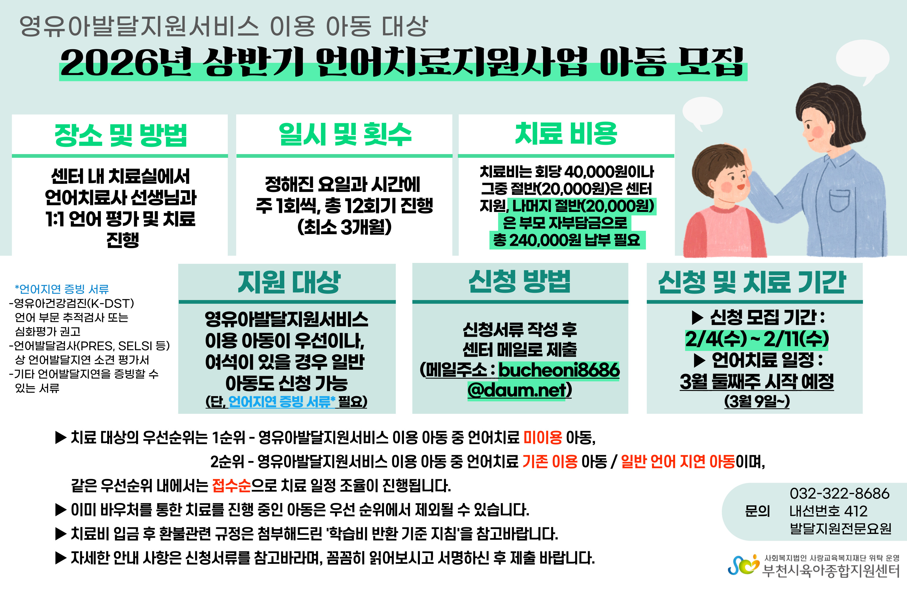[센터] [영유아발달지원서비스] 2026년 상반기 언어치료지원사업 아동 모집 안내