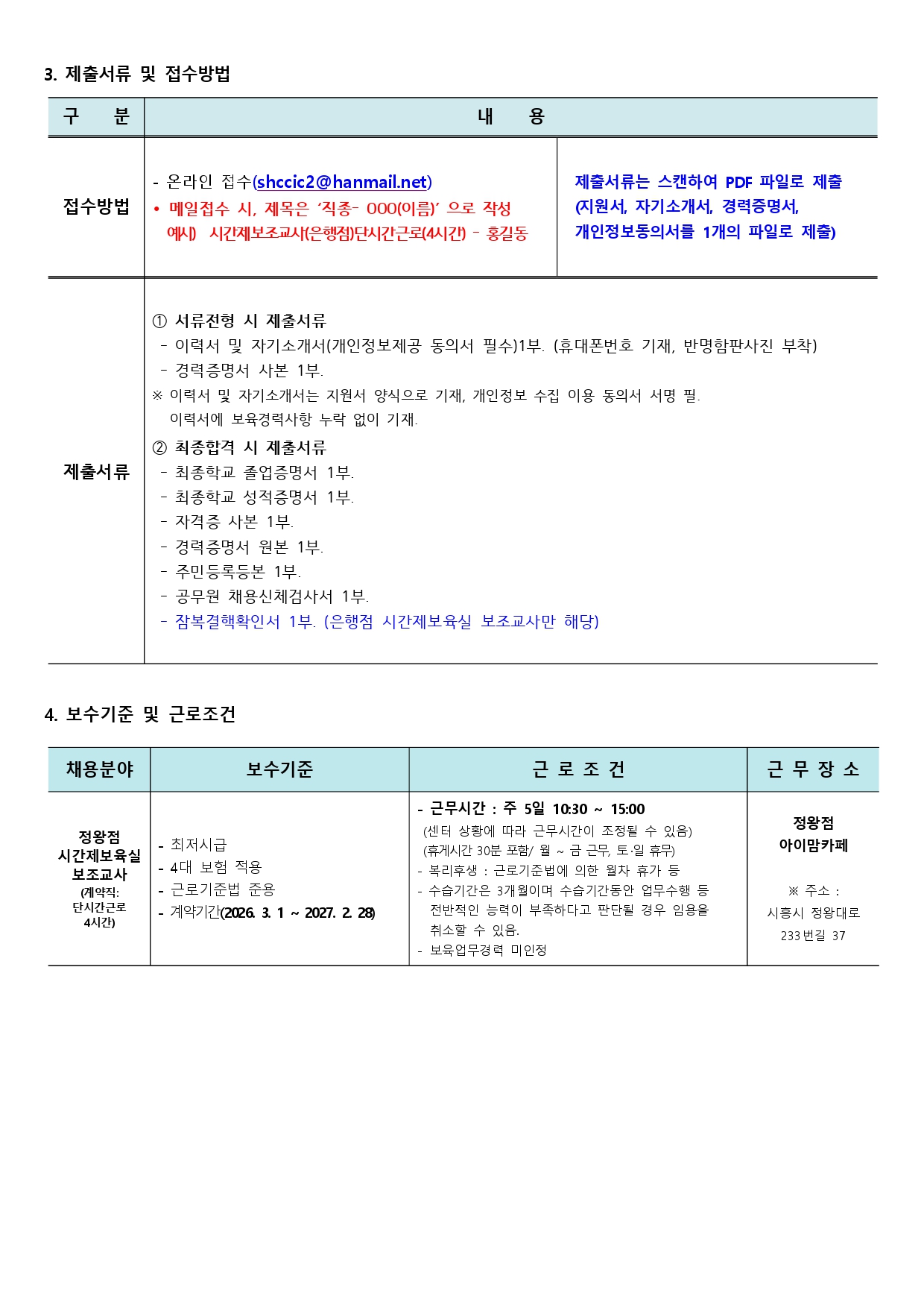 [외부] [시흥시육아종합지원센터] 직원(시간제보조교사-정왕점) 채용 안내