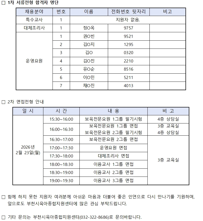 [센터] 26-01,02,03,04,05 직원 채용 1차 서류전형 합격자 발표