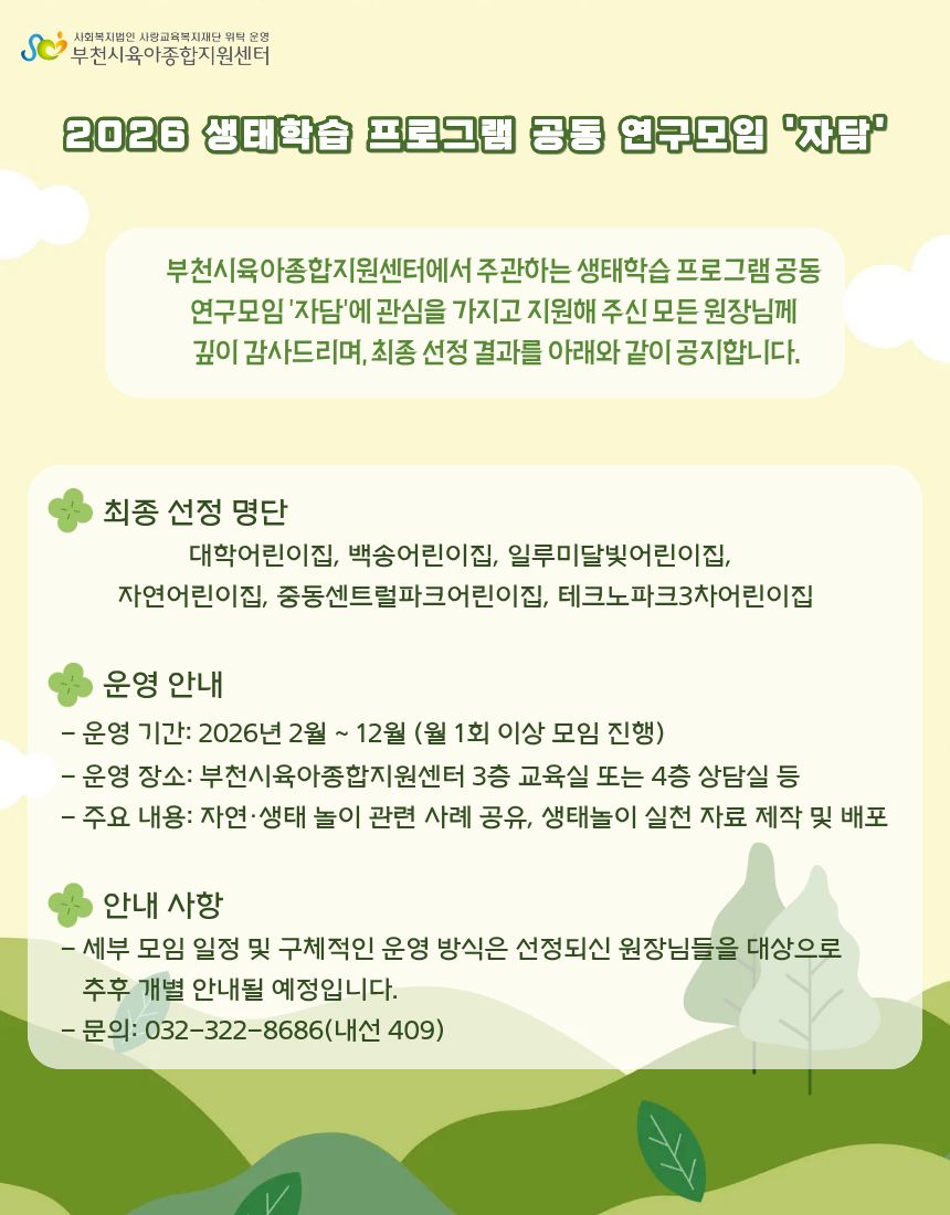 [센터] 2026 생태학습 프로그램 공동 연구모임 '자담' 선정 공고