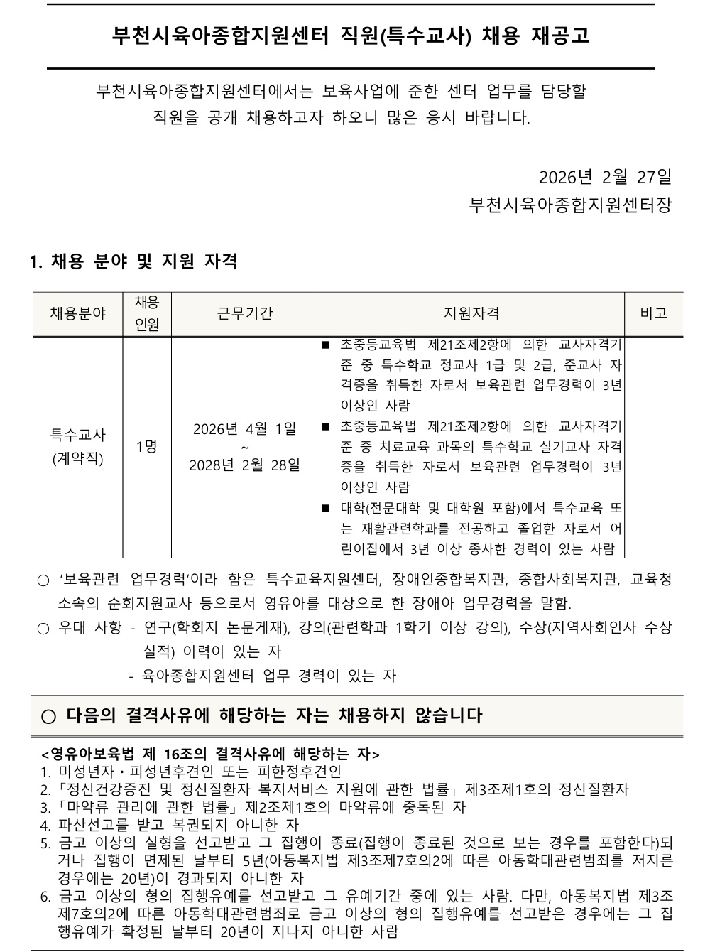 [센터] 26-06 특수교사 채용 재공고