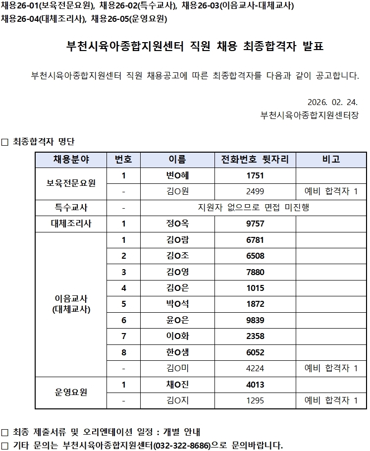 [센터] 26-01,02,03,04,05 직원 채용 최종합격자 발표