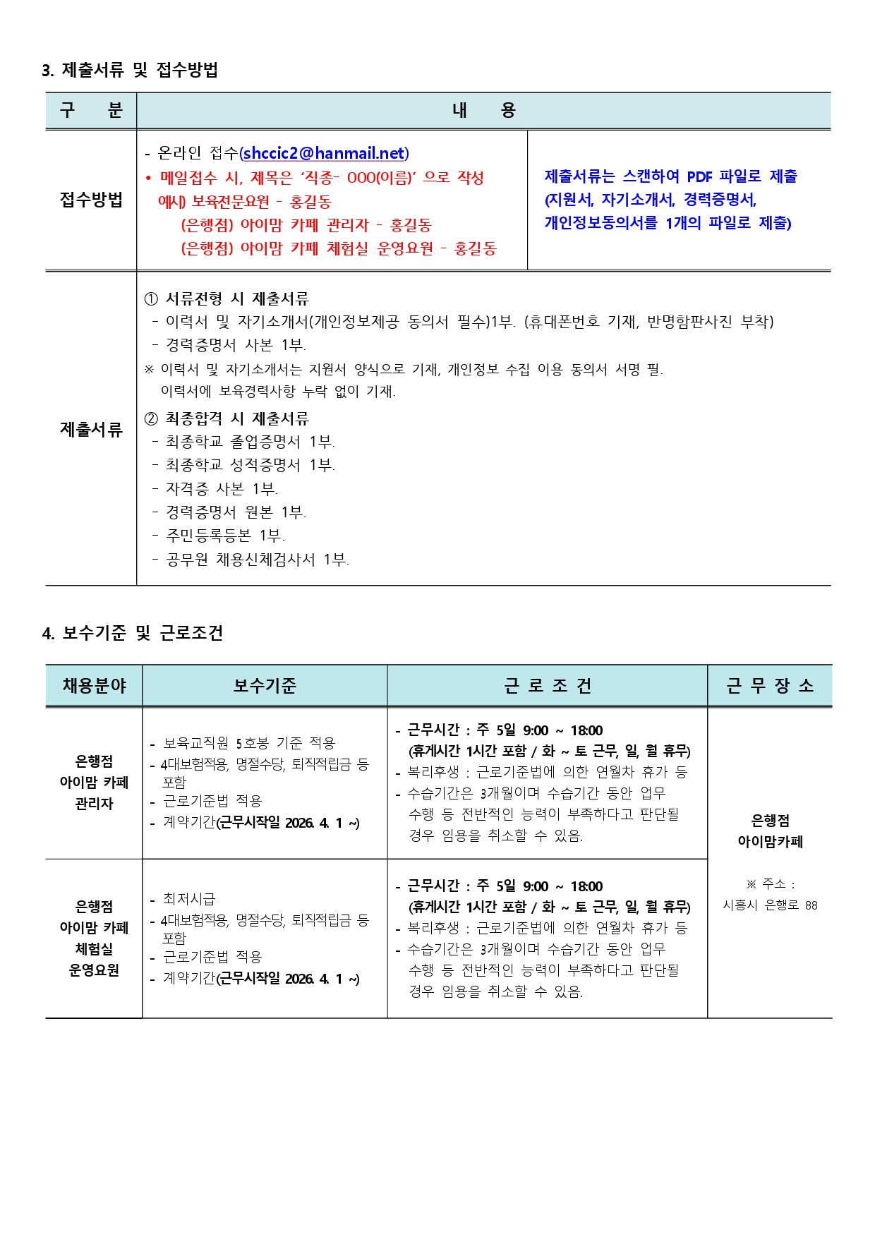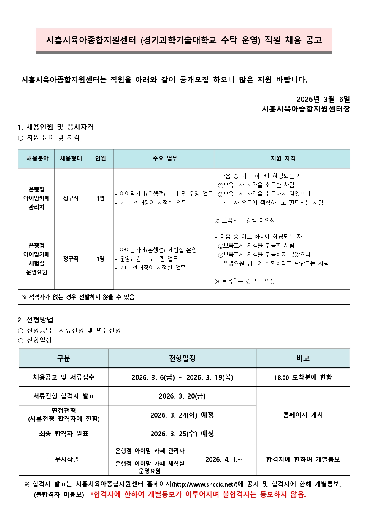 [외부] [시흥시육아종합지원센터] 아이맘 카페 관리자, 아이맘 체험실 운영요원 - 은행점 채용 안내