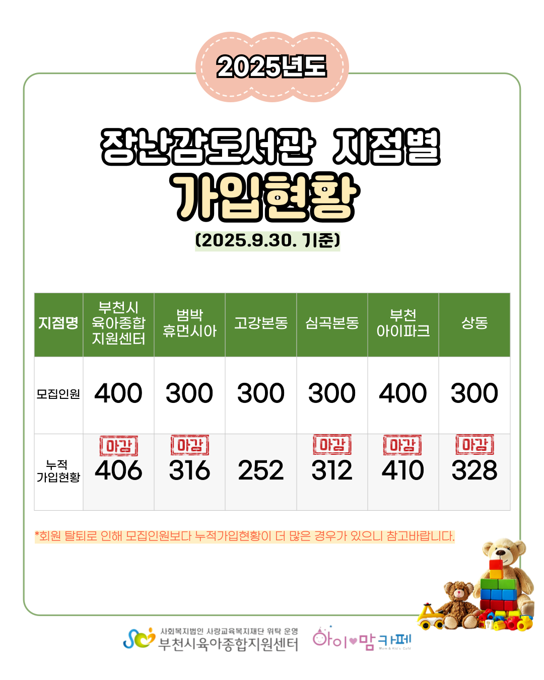 [센터] 2025년 장난감도서관 지점별 가입현황(9.30기준)