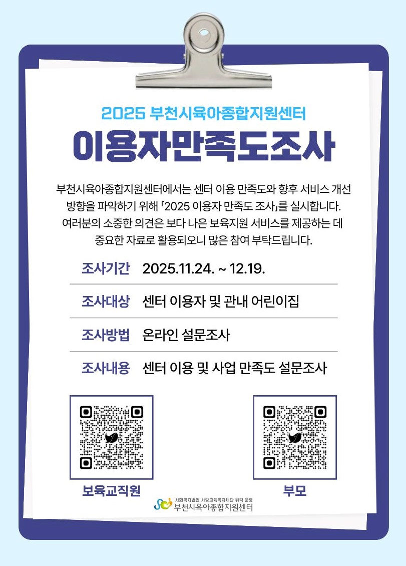 [센터] [부천시육아종합지원센터] 2025 부천시육아종합지원센터 이용자 만족도 조사