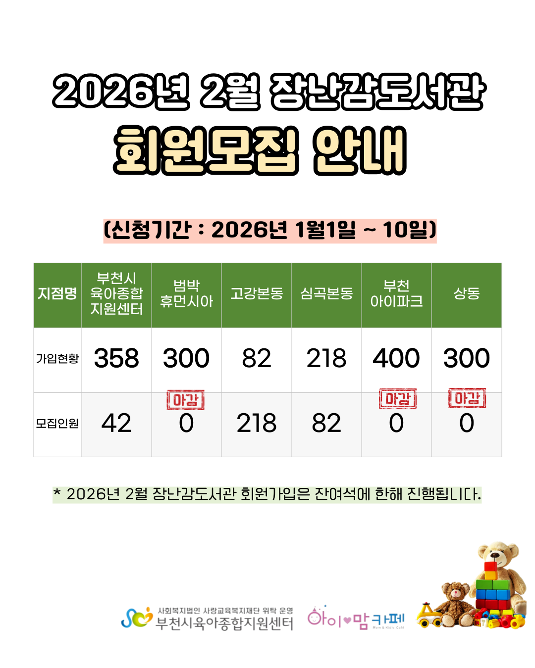 [센터] 2026년 2월 장난감도서관 회원모집 안내
