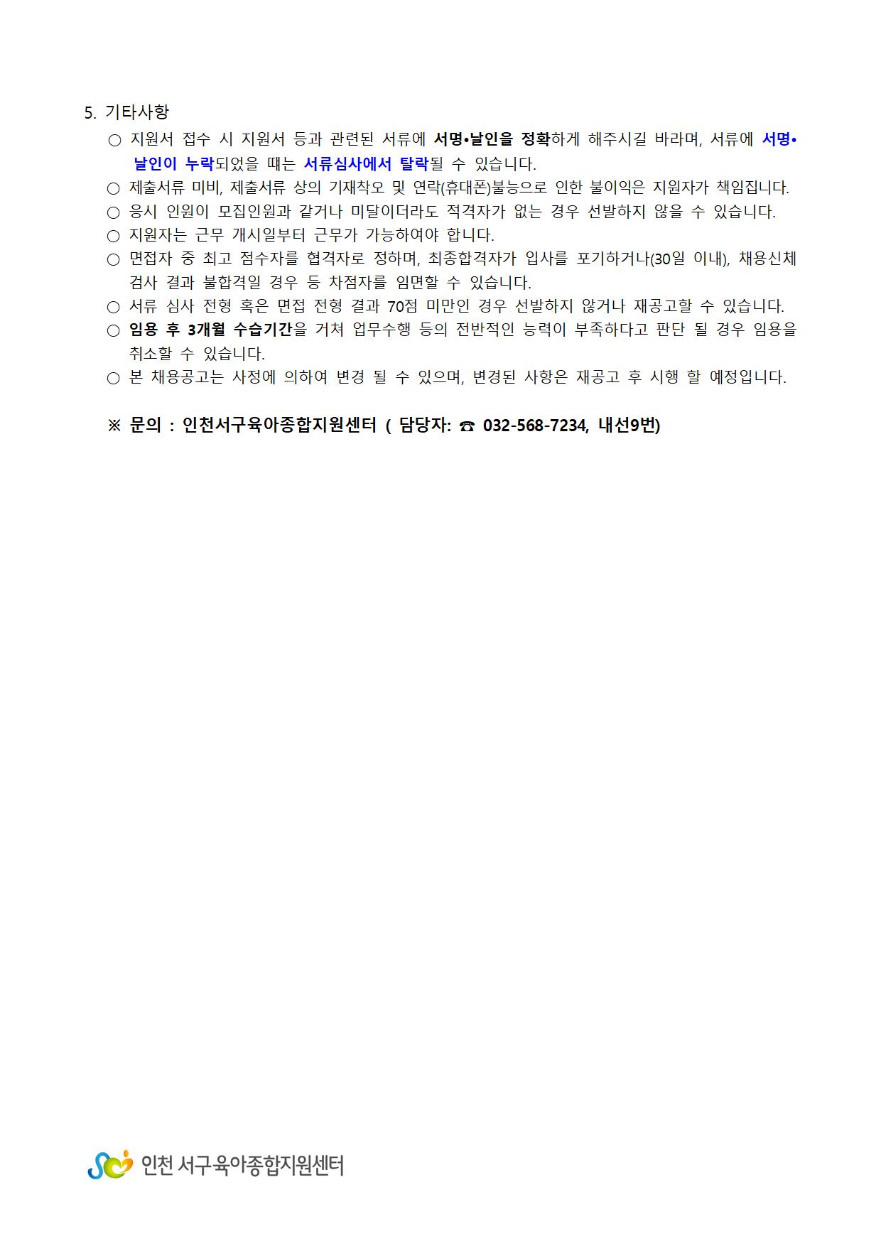 [인천서구육아종합지원센터]특수교사 직원 채용 공고