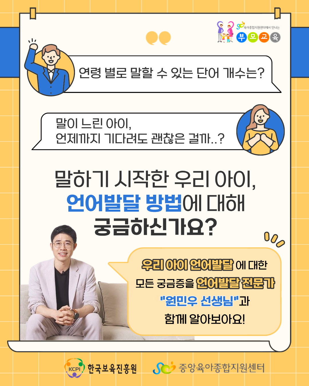 [외부] [중앙육아종합지원센터] 집에서도 놀(면서) 자(란다) - 우리 아이 언어발달 지금이 골든타임!