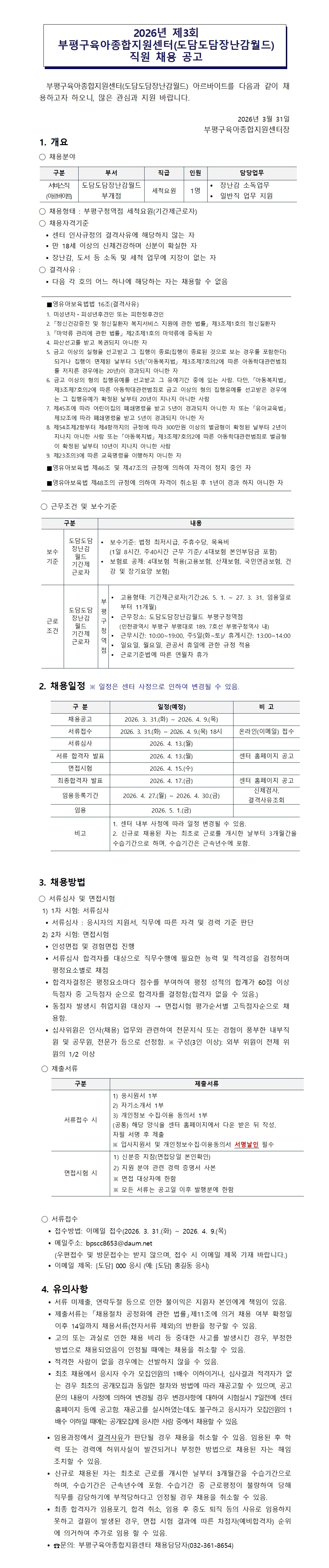 [외부] [부평구육아종합지원센터] 도담도담장난감월드 직원 채용 안내