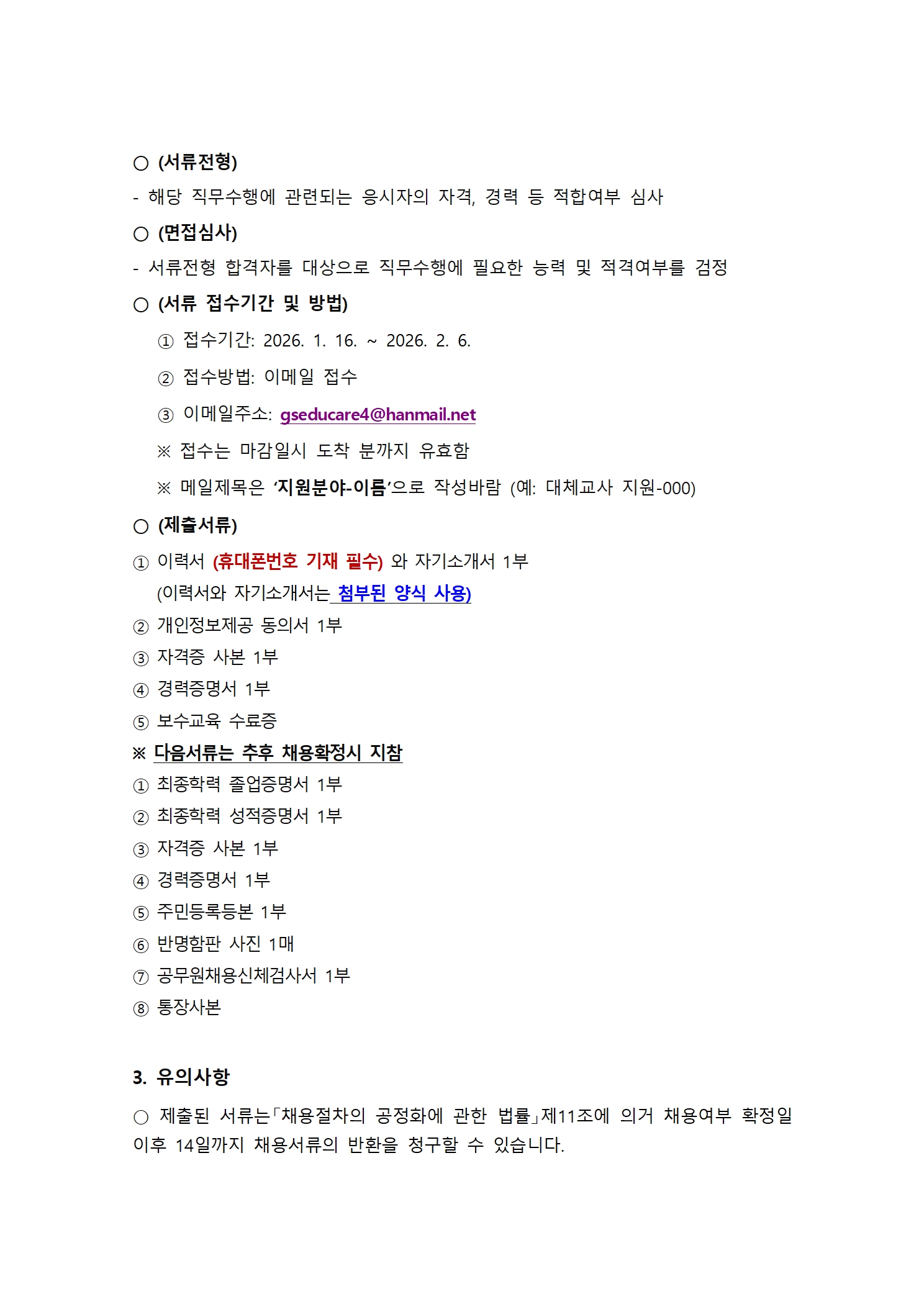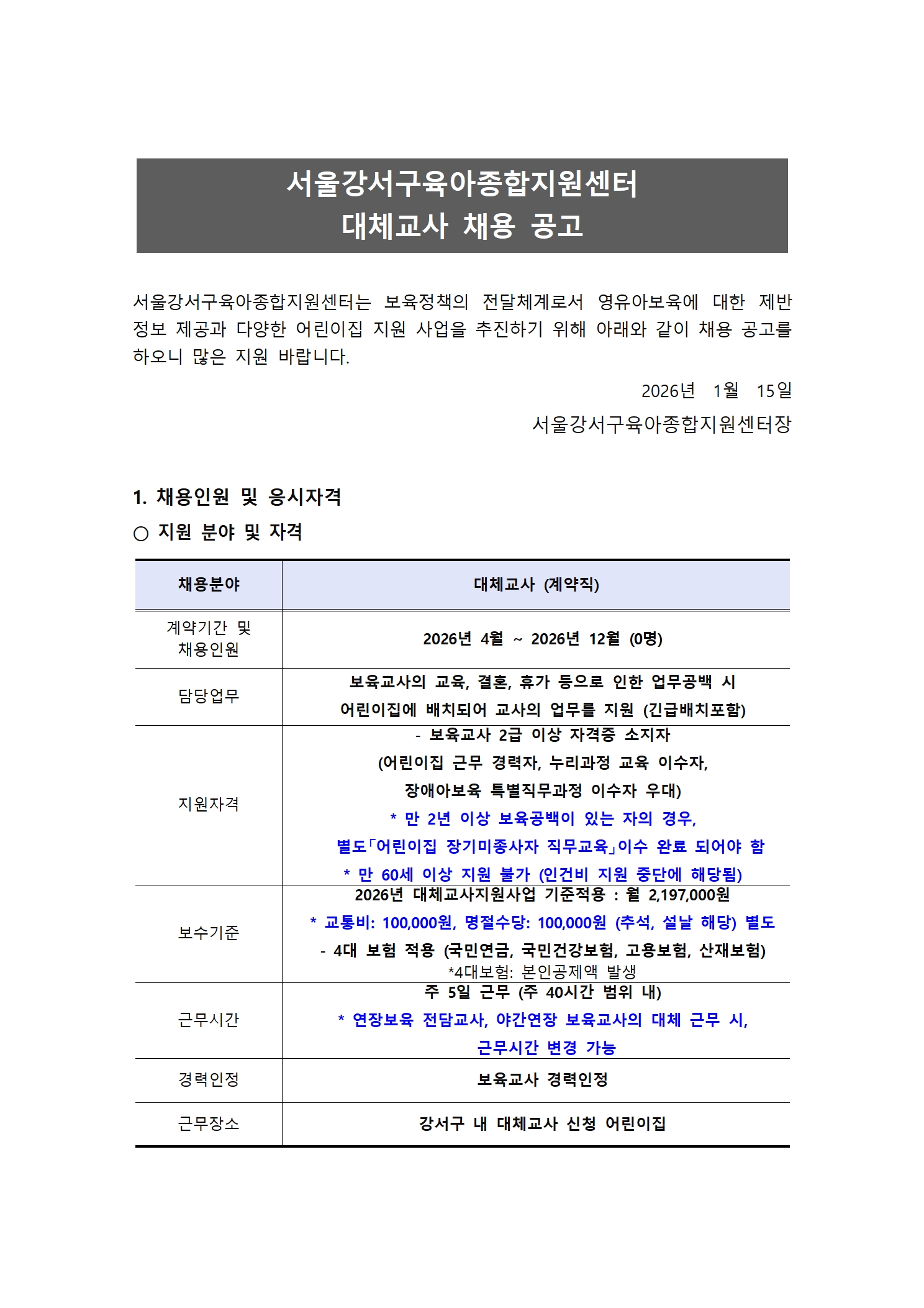 [외부] [서울강서구육아종합지원센터] 직원(대체교사) 채용 안내