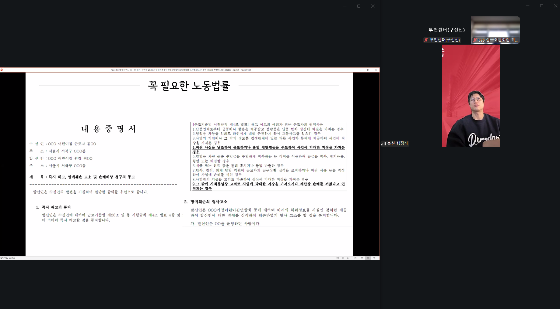 [보육교직원교육] 원장대상-아무도 알려주지 않는 어린이집 노동법률 교육이 홍현 행정사님 강의로 진행되었습니다.