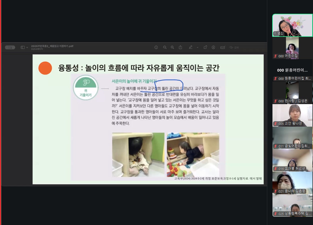 배움지원을 위한 교사의 역할(영아-심화)교육이 이영신 교수(한양여자대학교 유아교육과)강의로 진행되었습니다.
