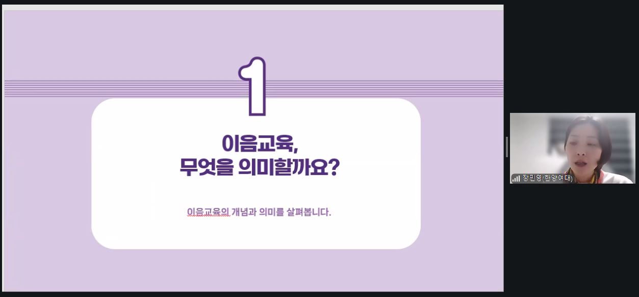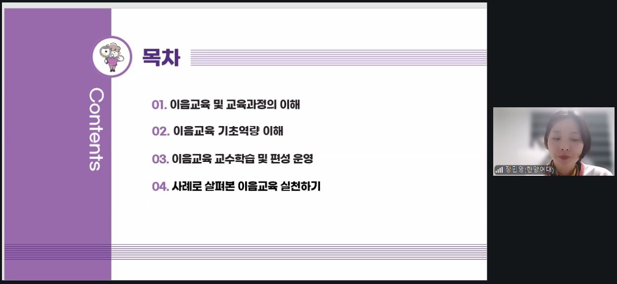함께 배우는 초등이음교육(이론)이 장민영 교수(한양여자대학교 유아교육과)강의로 진행되었습니다.
