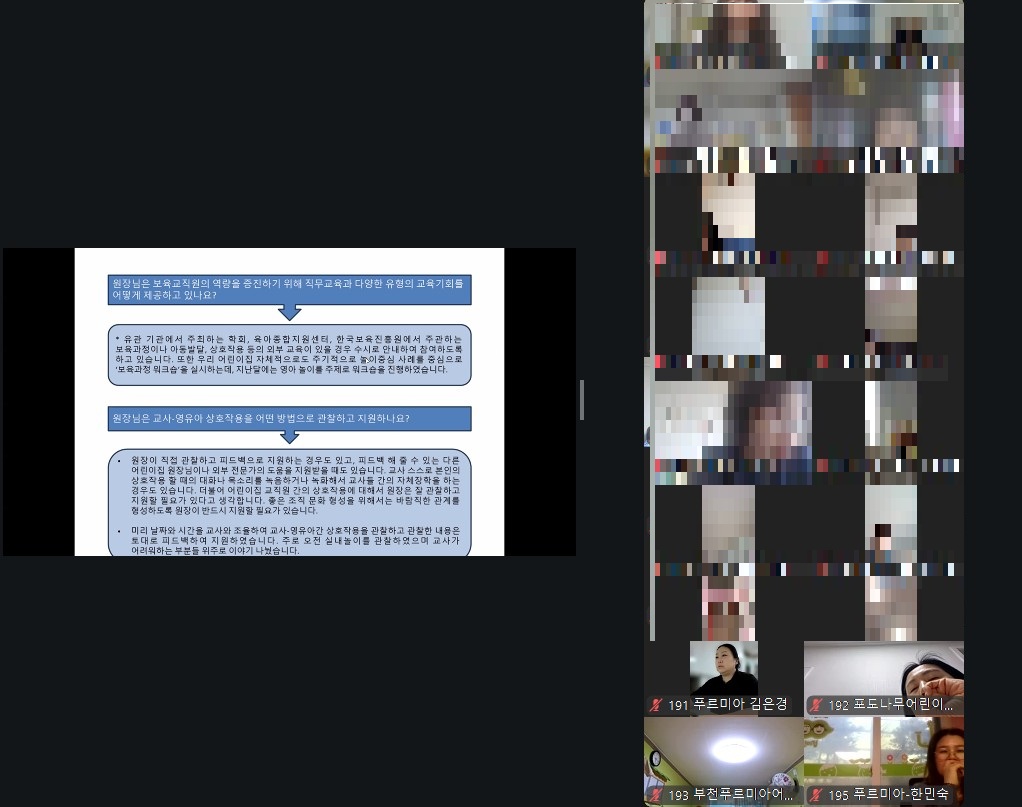 ZOOM 온라인 화상교육으로 평택시육아종합지원센터 홍은주 센터장님의 강의로진행되었습니다.