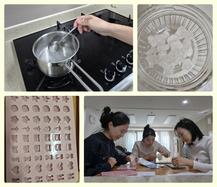 10월 부모자조모임 [자일리톨 사탕 만들기] 활동 사진입니다.