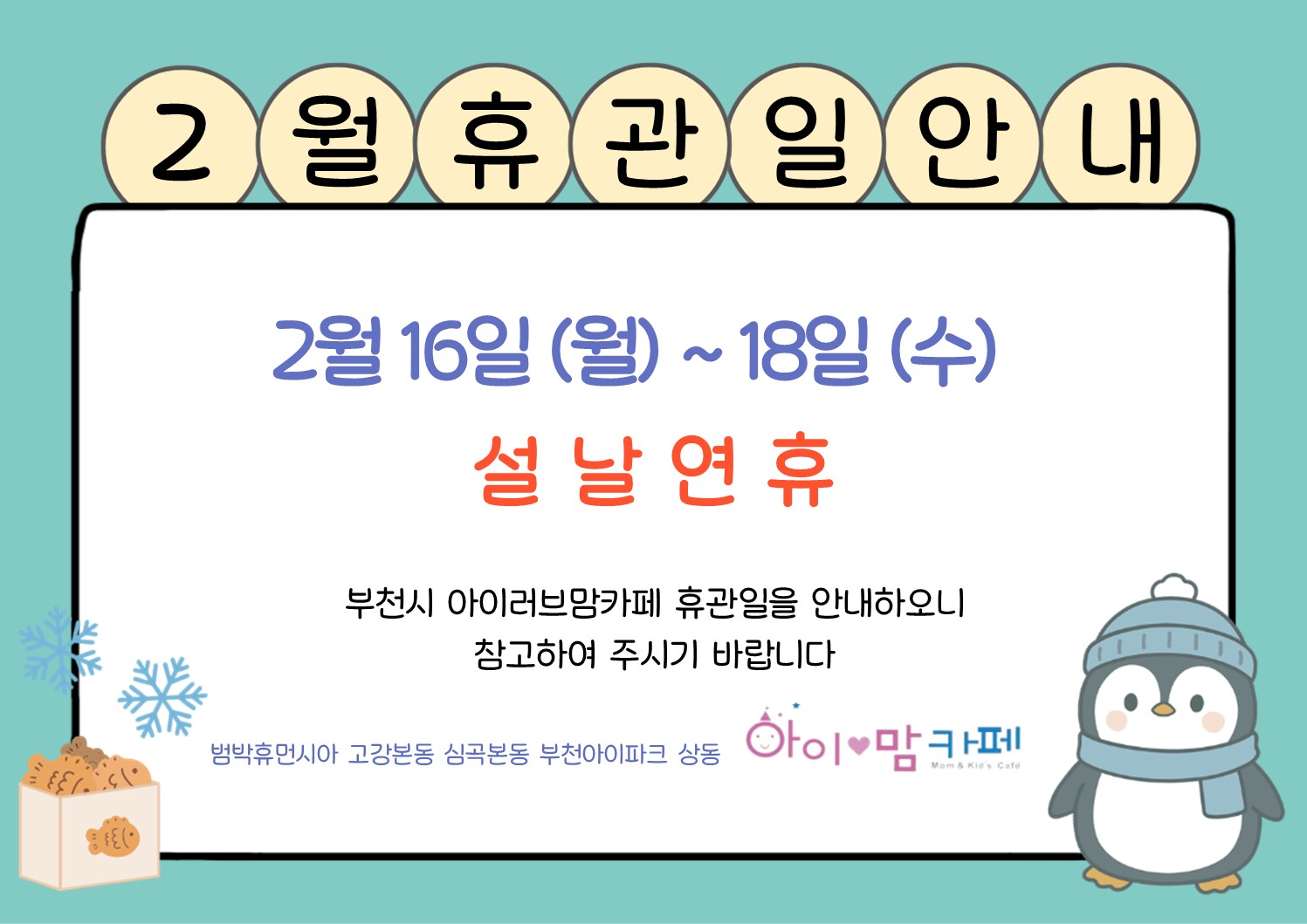 [고강본동] 2월 휴관일 안내