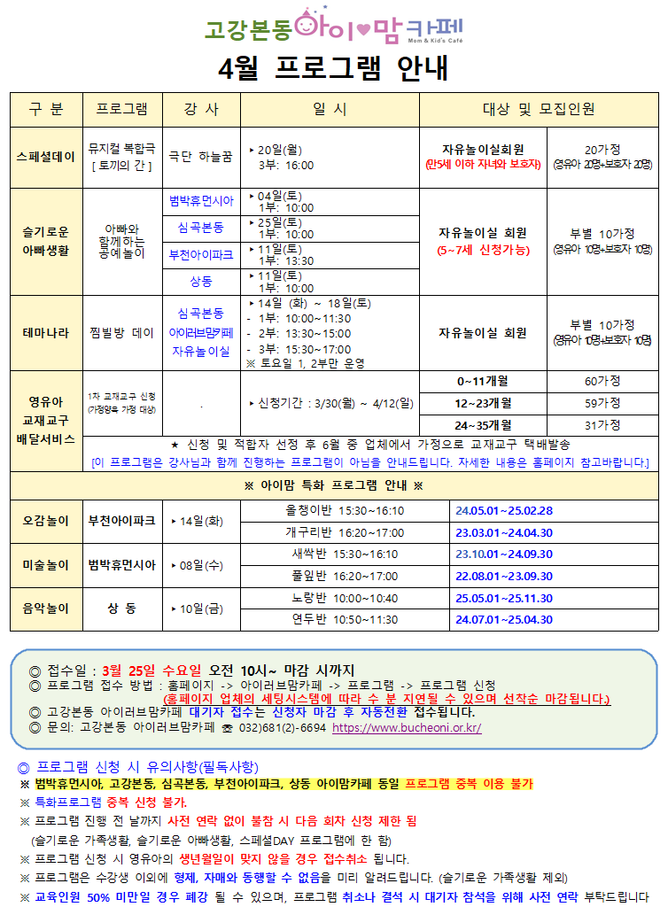 [고강본동] 4월 프로그램 안내문